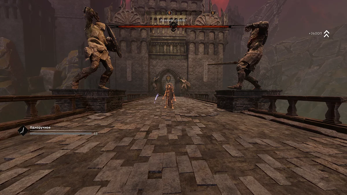 Поверніться до лицаря і рухайтеся за сюжетом. Убийте нежить в кінці коридору і спускайтеся по будівельних лісах вниз. По дорозі побачите чорні зарослі і постамент з кнопкою, поки що не звертайте уваги, пізніше у вас з'явиться можливість з цим взаємодіяти.