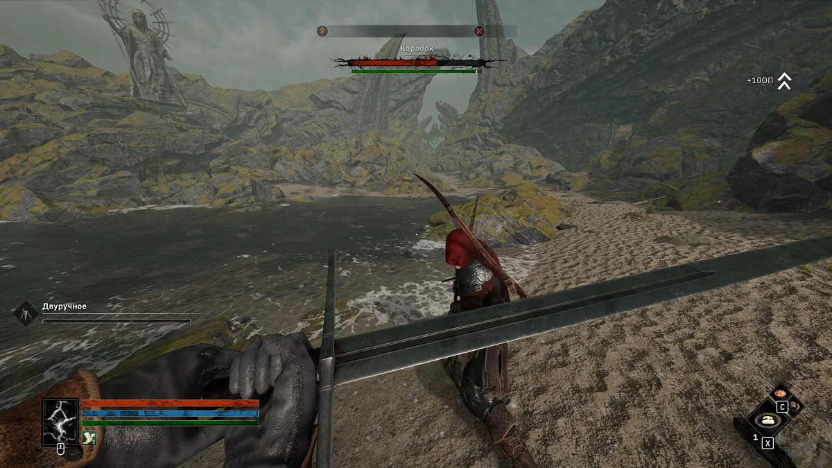 Карадок може вбити героя за пару ударів. У чесному бою вбити рицаря важко, тому що він лікується в бою. Однак можна піти на хитрість: залізти в човен і бити по голові.