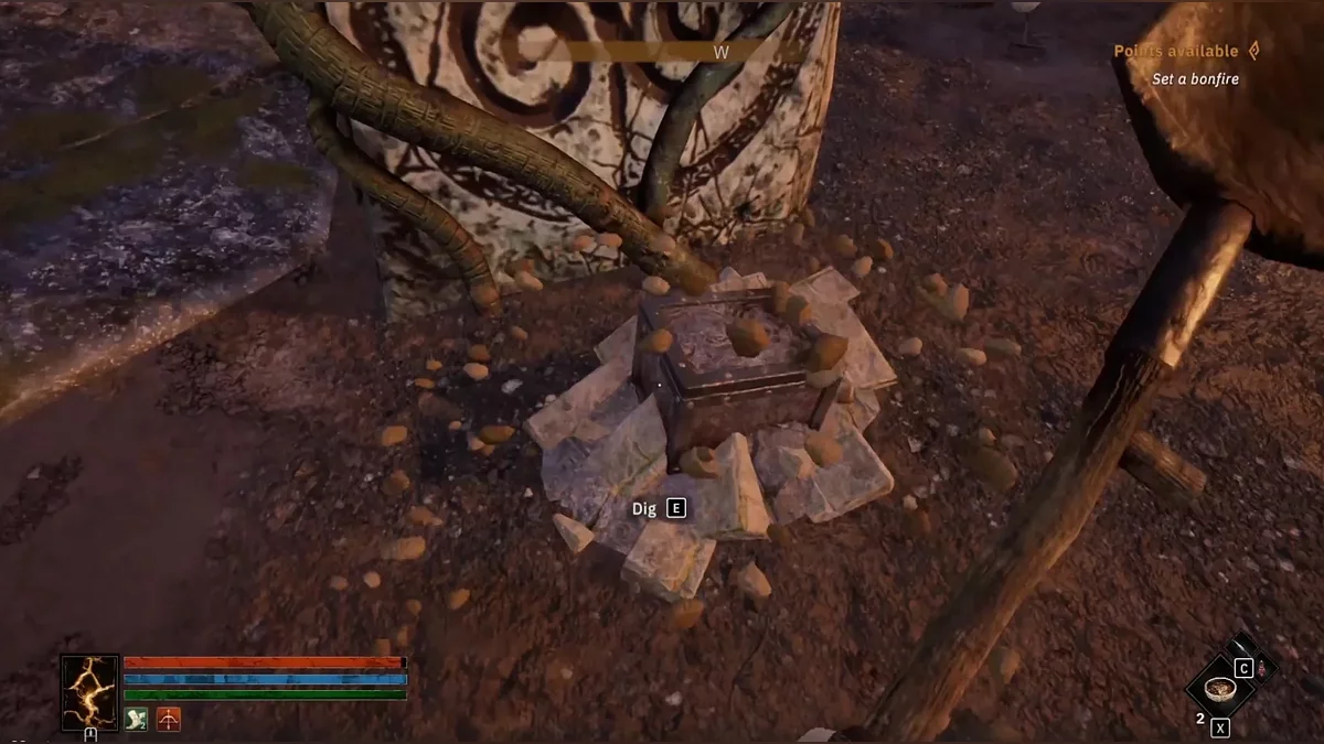 Далі вам потрібно викопати особливий шматок заліза, який закопаний на сімейній ділянці Беора. Місце знаходиться на півночі від міста поруч з озером. Будьте обережні — по окрузі буде блукати нежить. Перебийте супротивників і викопайте скарб з сімейним залізом. Поверніться до квестодавця і віддайте йому предмет. Тепер вам потрібно знайти третій предмет, який стане частиною бойового молота.