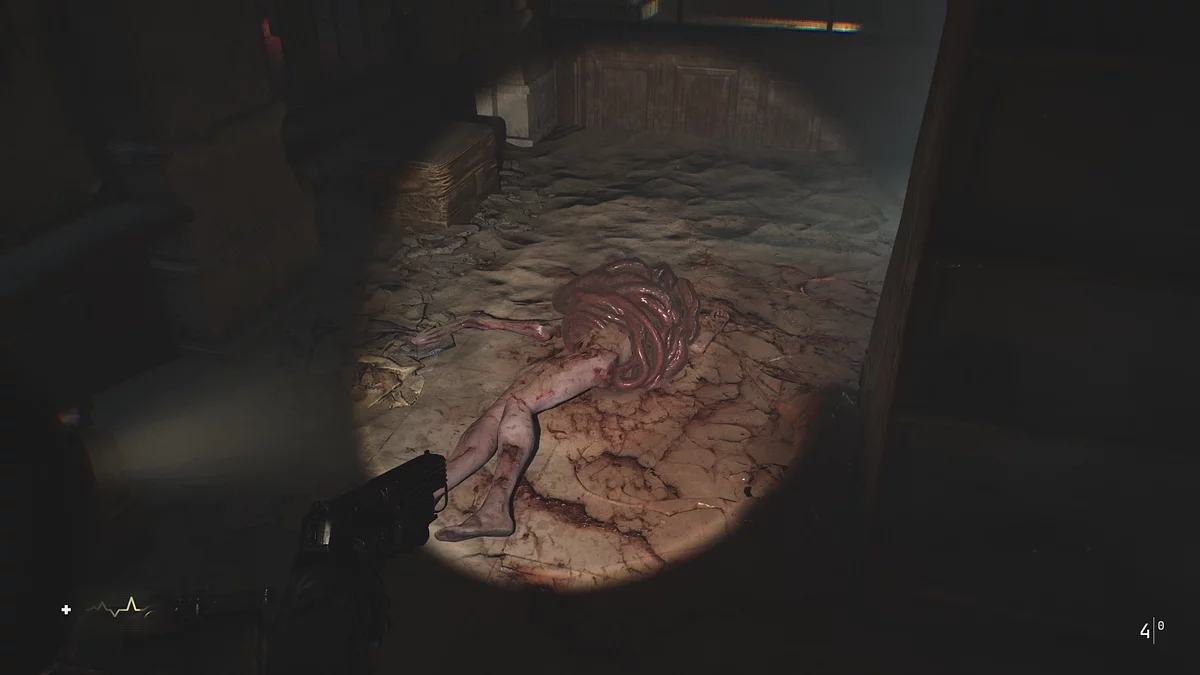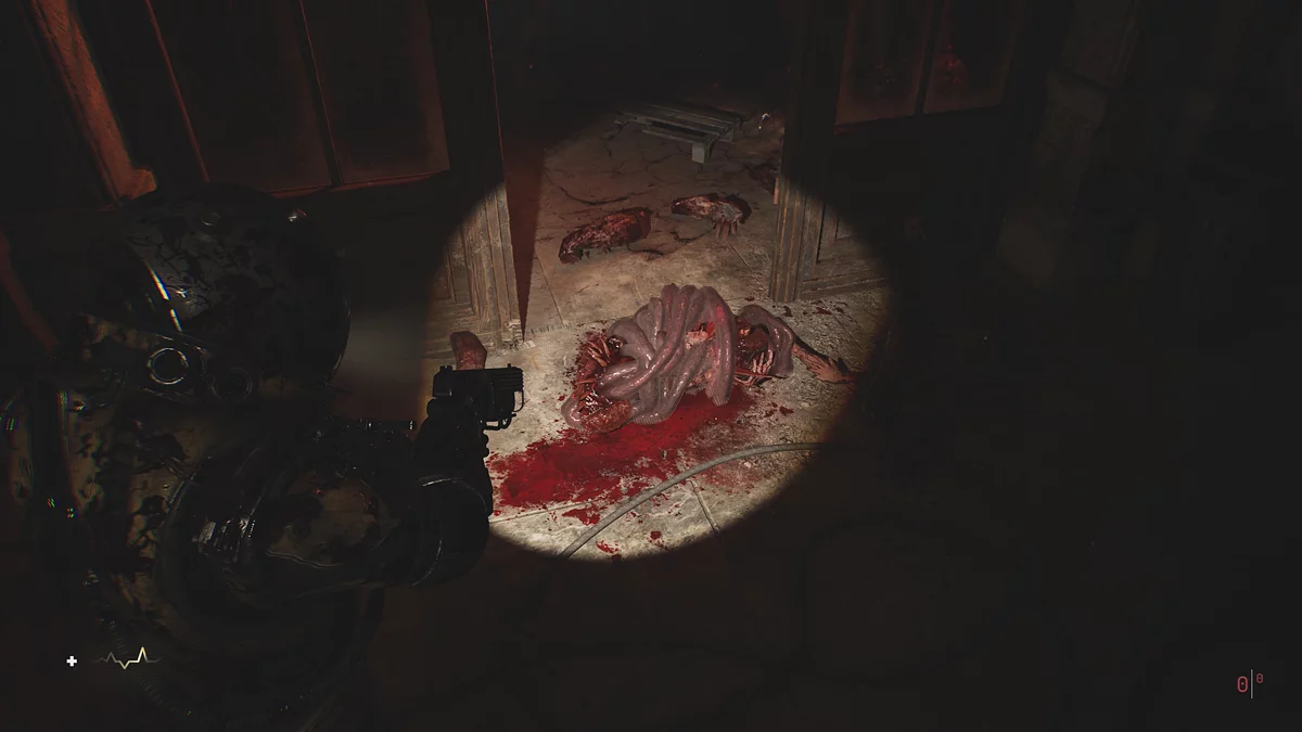 На шляху зустрінеться тіло, що лежить на підлозі, обмотане кишками. Цей труп незабаром перетвориться на чудовисько, тому морально підготуйтеся до сутички. Про те, як вбити монстра, ми детально розповімо в наступному розділі.