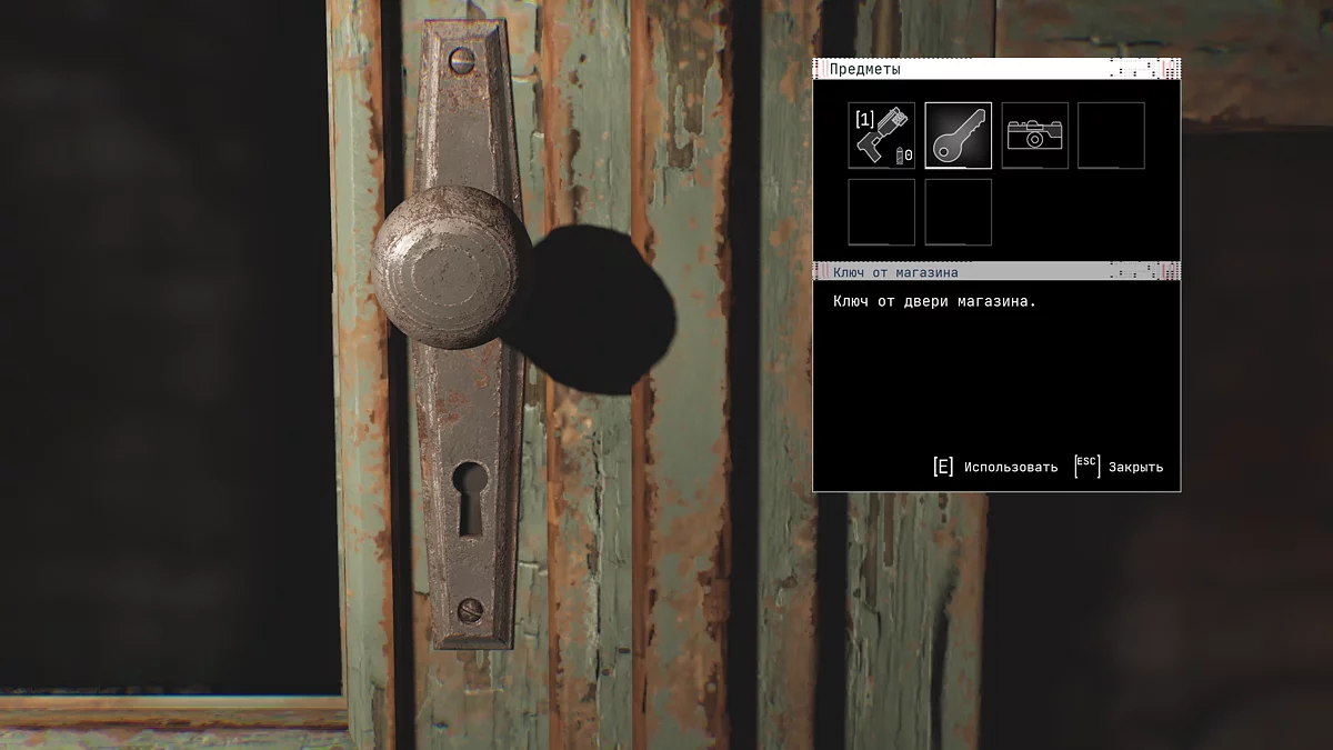 Візьміть ключ з прилавка магазину, вбийте сироту і поверніться до зеленої скляної двері. Підійдіть до неї і взаємодійте з замком, після чого у правому верхньому куті з'явиться контекстне меню з вибором предметів, де потрібно використати «Ключ від дверей магазину».