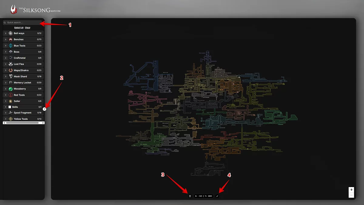 Інтерактивна карта Hollow Knight: Silksong — ключові місця та локації в грі