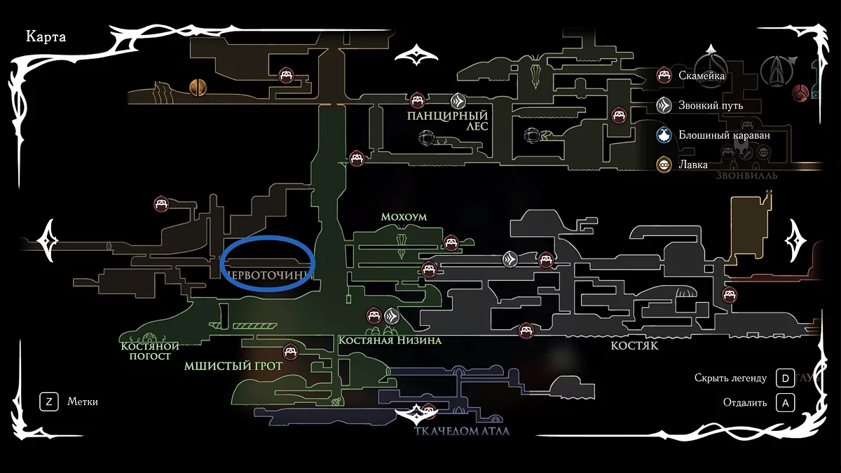 Інтерактивна карта Hollow Knight: Silksong — ключові місця та локації в грі -