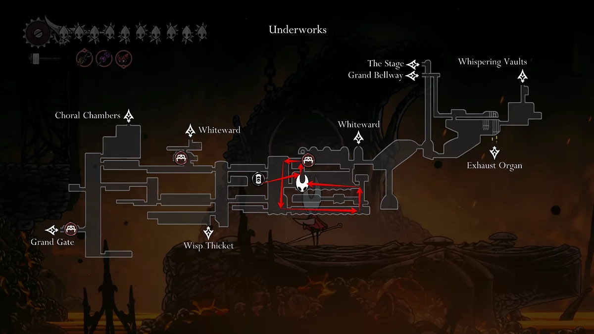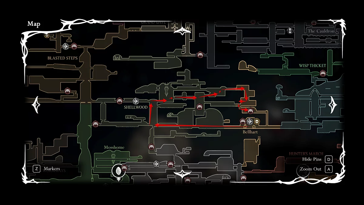 На початку гри у Хорнет досить обмежені можливості для платформінгу, тому вже з перших хвилин проходження варто задуматися про збільшення потенціалу героїні. Далі детально опишемо, як отримати наступні акробатичні здібності: