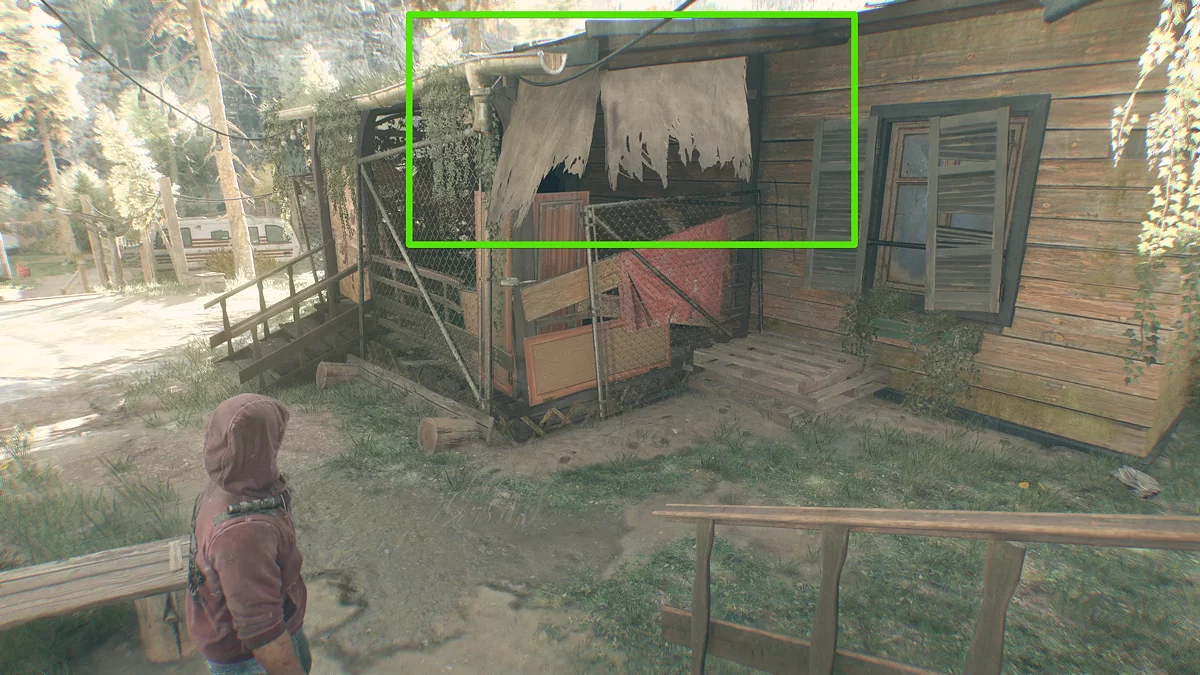 Покиньте монастир і рухайтеся вниз через арку. Перетніть річку і підійдіть до будинку, з труби якого йде дим. Ви побачите, що вхід забарикадований, але якщо придивитися, можна виявити отвір з правого боку над ґанком. Відволікайте заражених і залізьте в хатину, де зустрінетеся з вижившим.