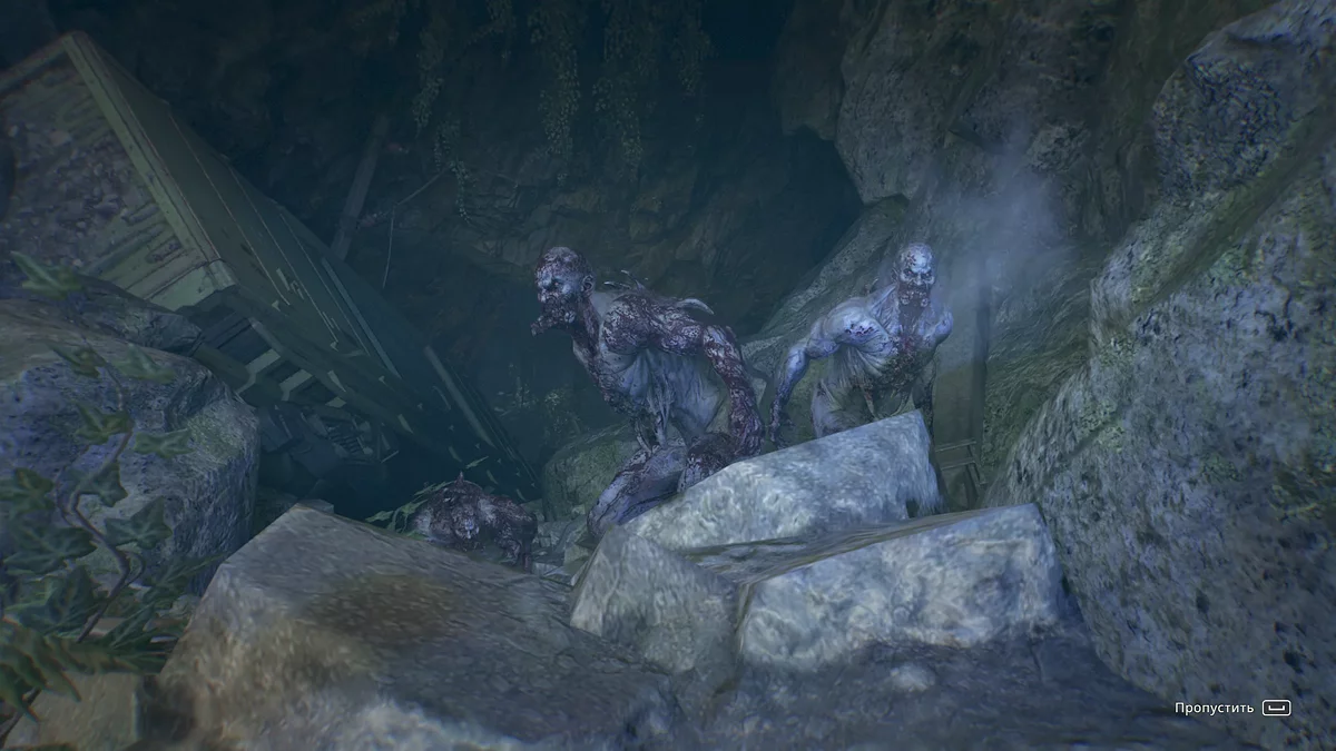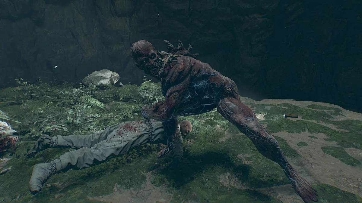 Залізьте в печеру. Пройдіть повз заражених, не привертаючи уваги, і підніміться на рівень вище. Рухайтеся вперед, поки не побачите синій трос, що веде вниз. Обстежте тіло вченого, після чого розпочнеться бій з босом.