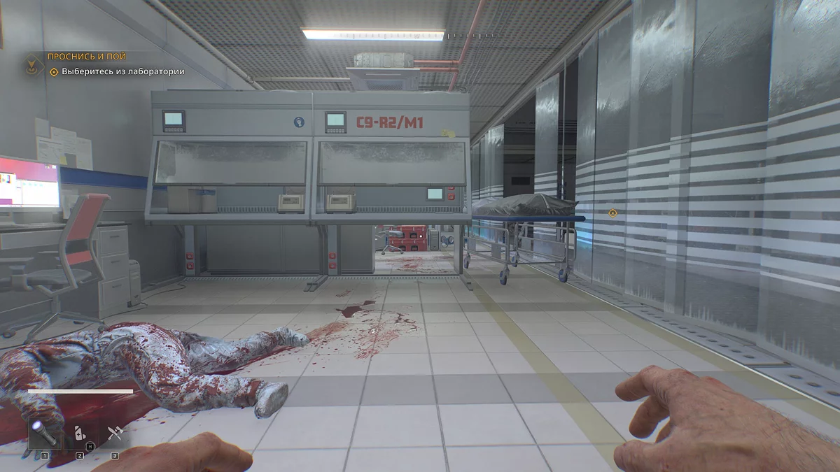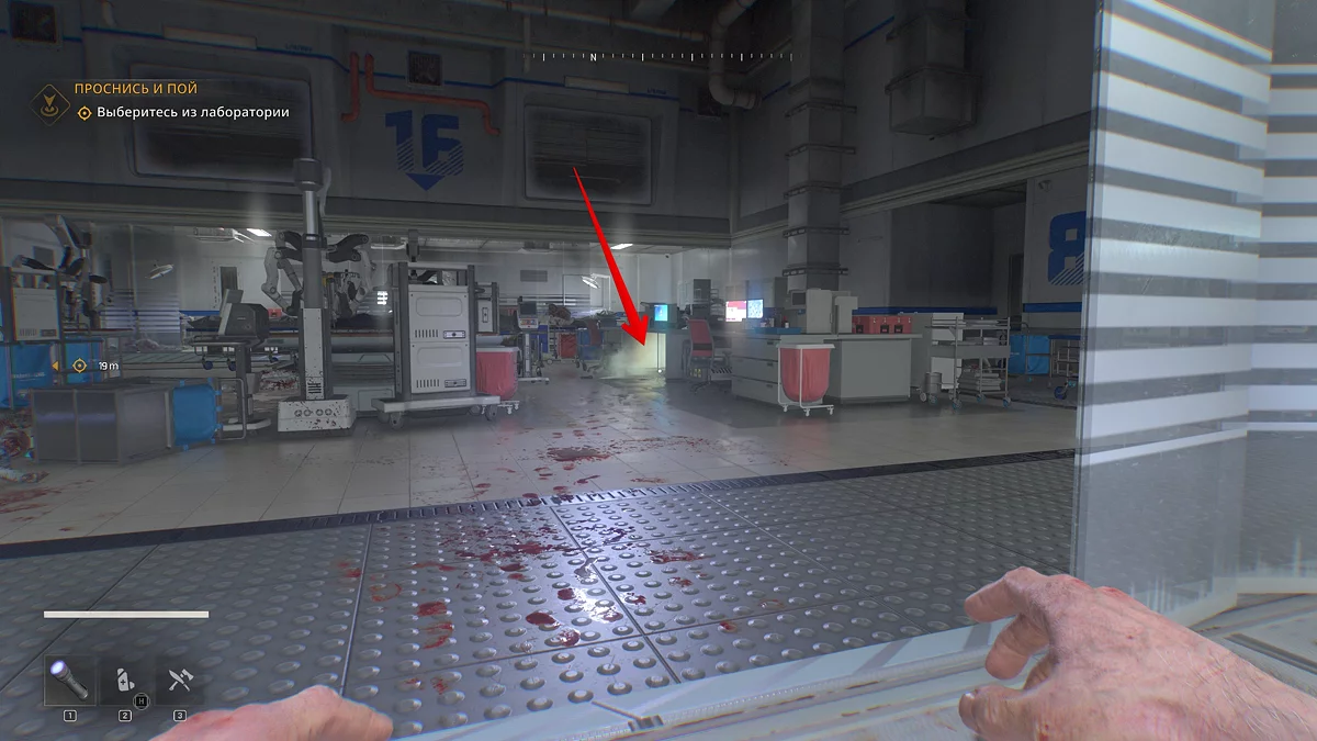 Покинувши шахту, ви опинитеся в головній операційній, в якій приблизно з десяток заражених. Тому слід скористатися тим, що вони зайняті, і тихо пройти повз. Спершу пролізьте під великим апаратом, щоб потрапити в головний зал: у разі, якщо вас виявлять, це буде шляхом для відступу.