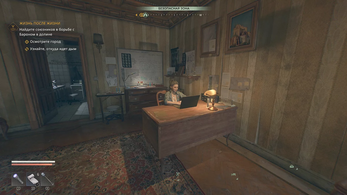 Коли покинете безпечну зону, у вас з'явиться доступ до карти світу та фоторежиму. Щоб зрозуміти, куди слідувати далі, залізьте на дзвіницю, спустіться на дах і скористайтеся біноклем.