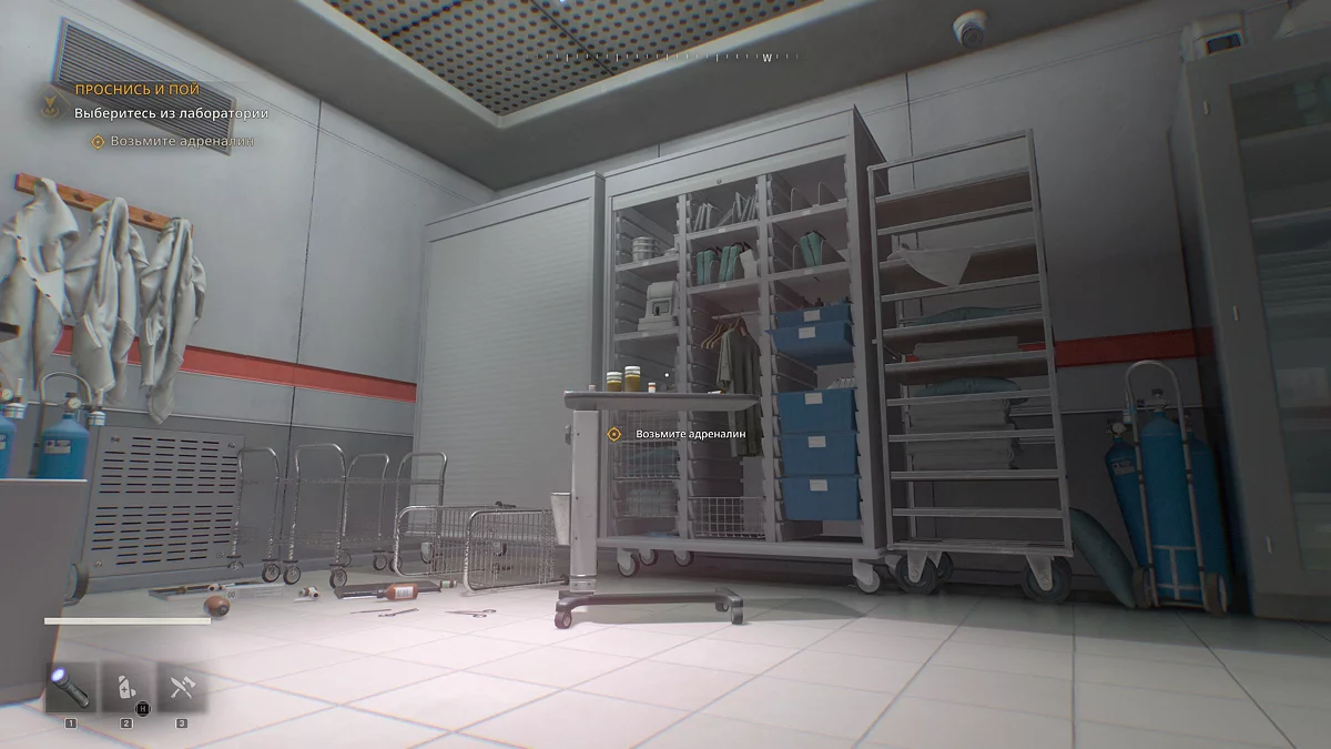 Покиньте вентиляцію, з якої ви потрапите в післяопераційну. Повзіть до дверей і продовжуйте рухатися коридором направо. В кінці поверніть наліво і подивіться на візок з жовтими склянками — там лежить адреналін, за допомогою якого Кайл встане на ноги.