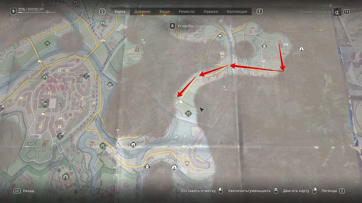 Тепер у вас є можливість займатися збором. Крім того, у героя з'являється «чуйка вижившого», за допомогою якої підсвічуються доступні для збору предмети. Тому, щоб полегшити своє подальше подорож, рекомендуємо ретельно вивчати локації.