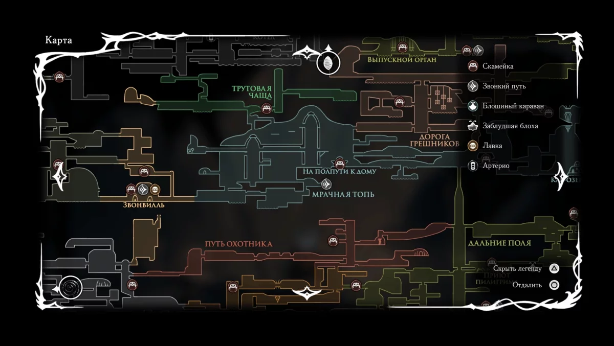 Інтерактивна карта Hollow Knight: Silksong — ключові місця та локації в грі -