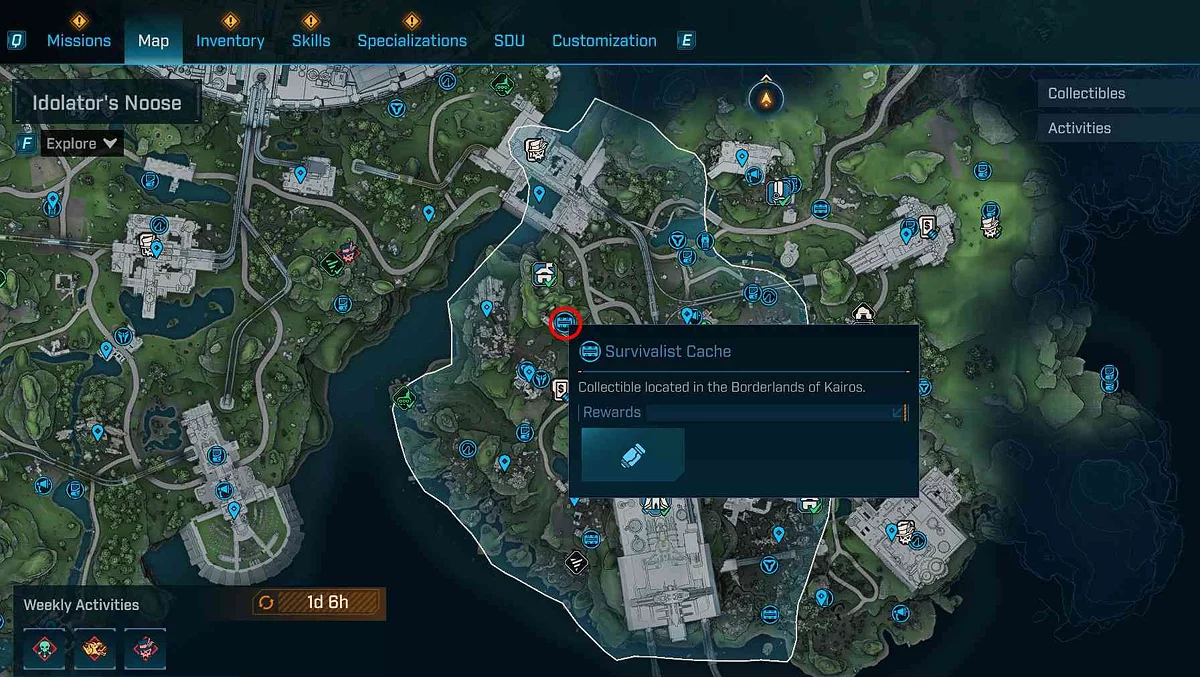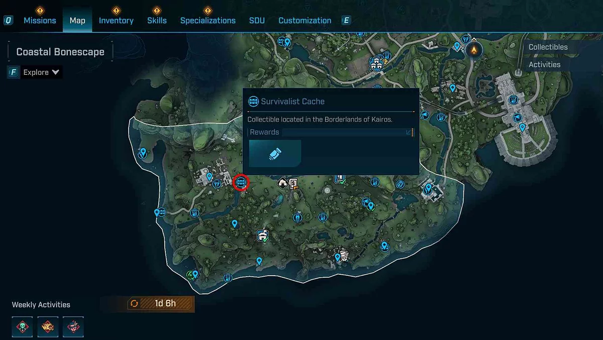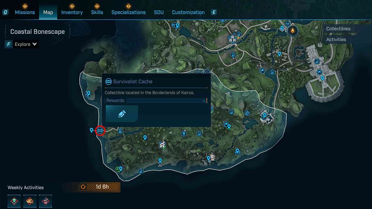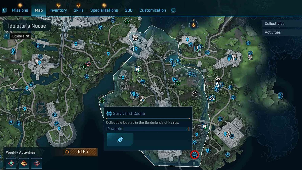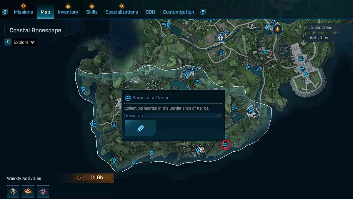 - Жетони SDU. За кожен тайник гравець отримує 10 жетонів SDU, які можна використовувати для покращення ємності інвентарю.