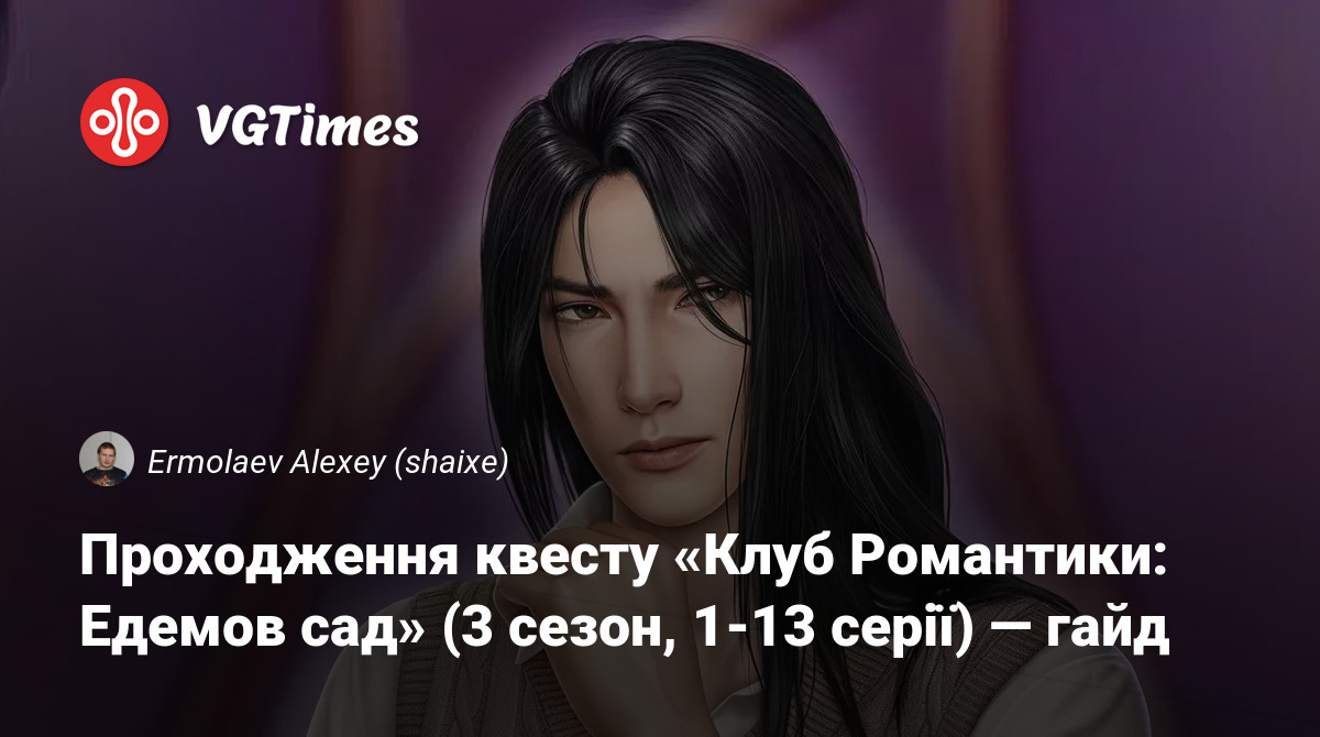 Проходження квесту «Клуб Романтики: Едемов сад» (3 сезон, 1-13 серії) — гайд
