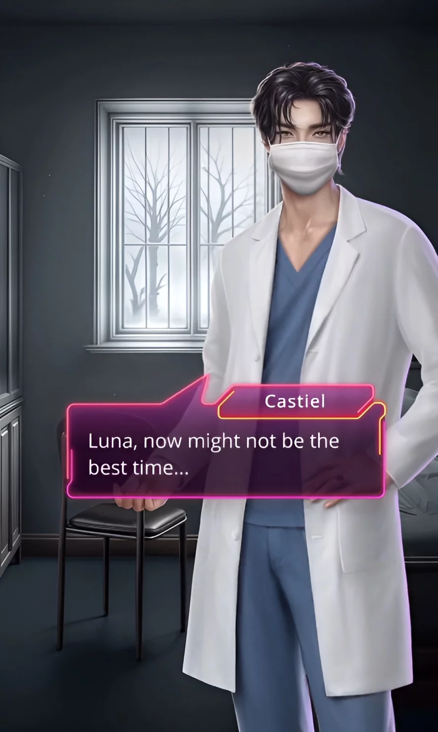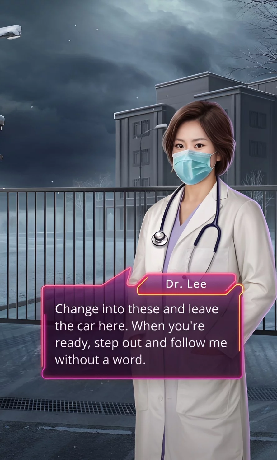 Потім Мінхьок захотів поговорити з пані Юн наодинці. А ви з Кастіелем почали готуватися до ризикованої поїздки. Зокрема, хлопець поставив на свою машину підроблені номери. Дорога виявилася довгою. Періодично ви відповідали на повідомлення Мінхьока. На вході в лікувальний заклад вас зупинила співробітниця. Вона запропонувала переодягнутися, після чого пропустила на територію лікарні. У вас буде 15 хвилин, щоб поговорити зі співаком.