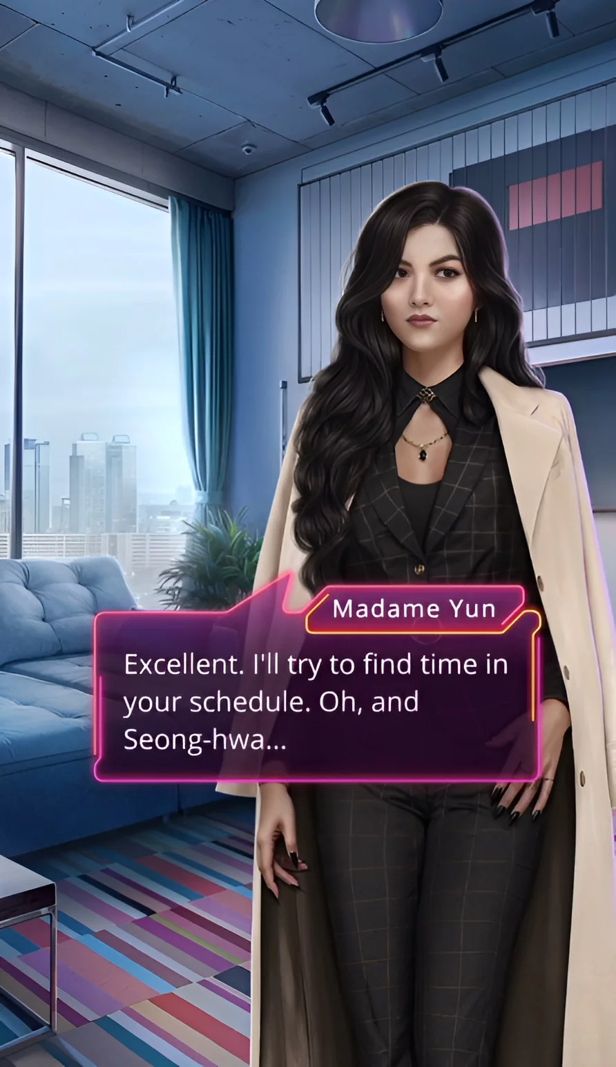 Пройшло кілька днів. Пані Пак викликала вас у свій кабінет. Туди ж прийшов Туєн, причому він приїхав в агентство заради вашої героїні.