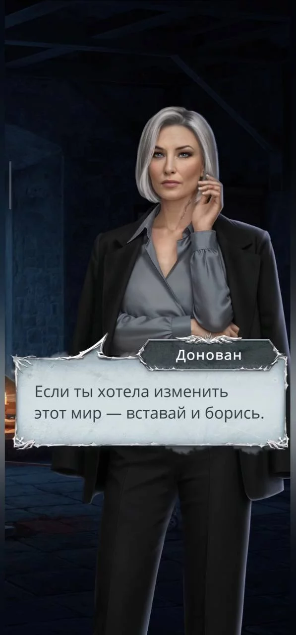 Шлях Темного Месії: Головна героїня випрямляється і розправляє плечі, дивлячись на Донован згори вниз. В глибині душі вона вдячна за поштовх під зад (+1 Жорстокість