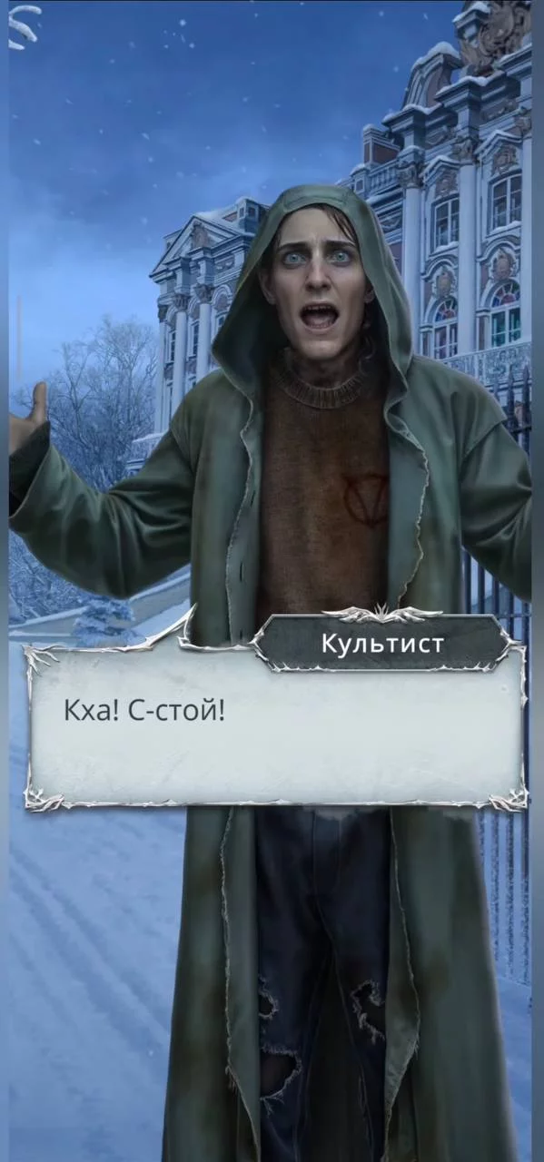 : Героїня, вирвавши руку, зачерпнула жменю снігу і піднялася. Від болю хотілося вити, тому будь-яке роздратування збільшувалося в сотні разів. Дівчина запитала культиста — значить, він б'є тих, хто слабший? Дівчина кинула крижану крихту йому прямо в очі, а потім вчепилася в горло культиста мертвою хваткою. Всередині неї кипіла спрага справедливості.