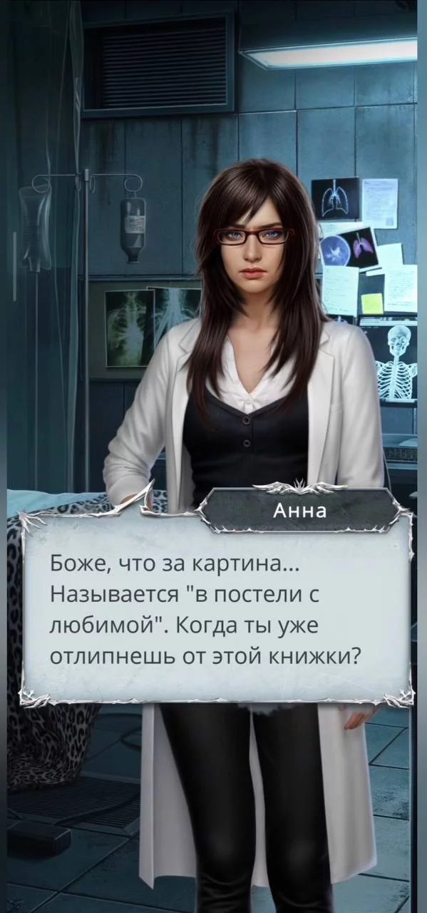 : Анна скаже, що здоров'я головної героїні стабільне. Якби не кілька «але». До повного одужання їй ще довго. У героїні дуже слабке тіло, як у кімнатної квітки. І як вона взагалі вижила в апокаліпсисі? Анна призначить ліки до повного одужання.