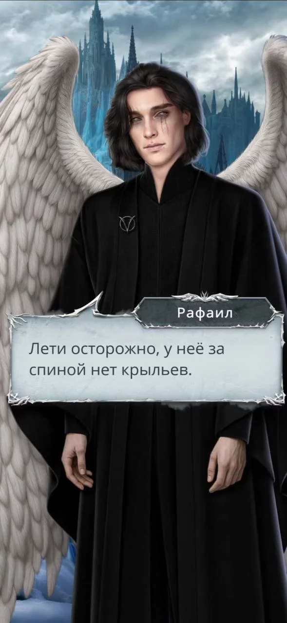 Кассіель не може пробачити себе за те, що з вами сталося. Але лише тому, що його любов залишилася незмінною (покращення відносин); - Спустилася на землю сама — не впливає на статистику.