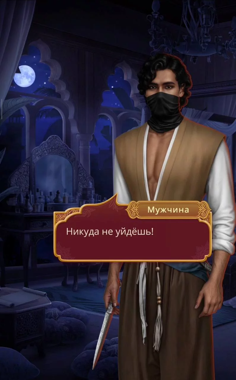 В спальні пролунав сторонній звук. Там явно хтось був. Дівія безшумно рушила в бік кімнати, озброївшись мідним глечиком, який стояв біля ванни. Дівчина непомітно виглянула з-за кута, перевіряючи, хто знаходиться в її спальні. Все в її тілі тривожно затремтіло, коли Деві побачила чоловічу тінь біля власного ліжка. Невідоме схилилося над її ліжком, а в його руці був короткий гостро заточений кинджал. Цей чоловік прийшов вбити її.