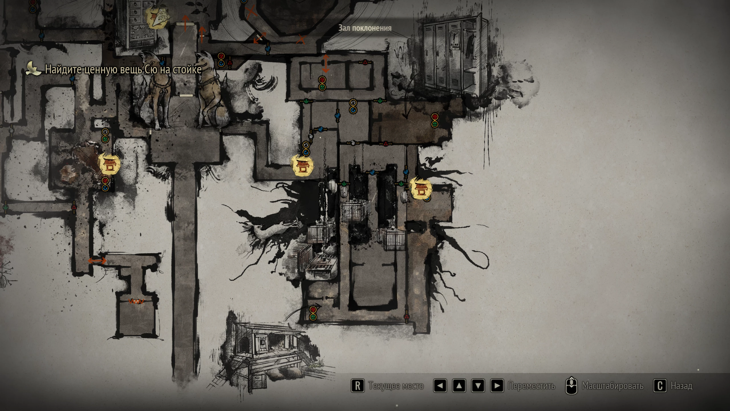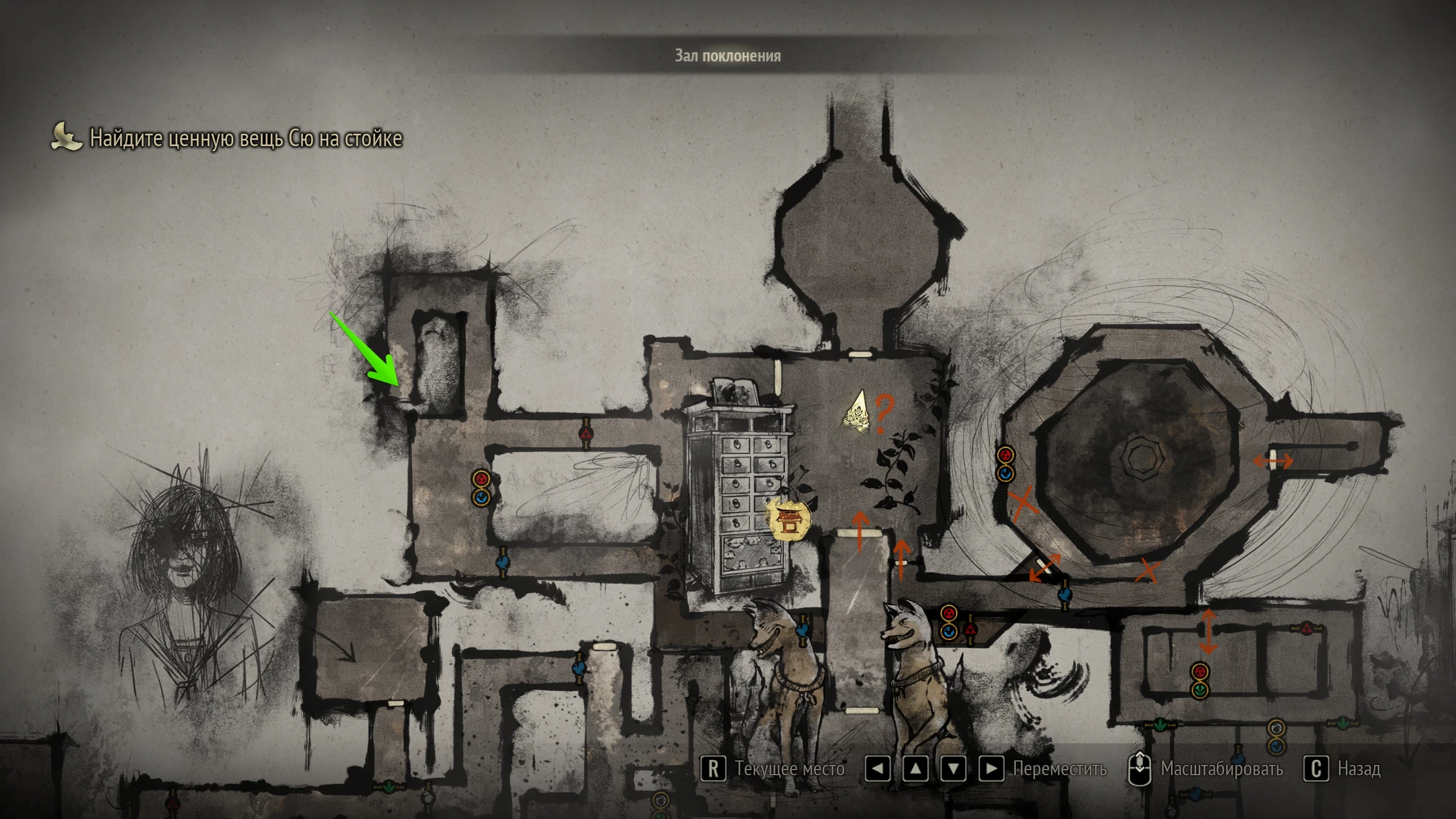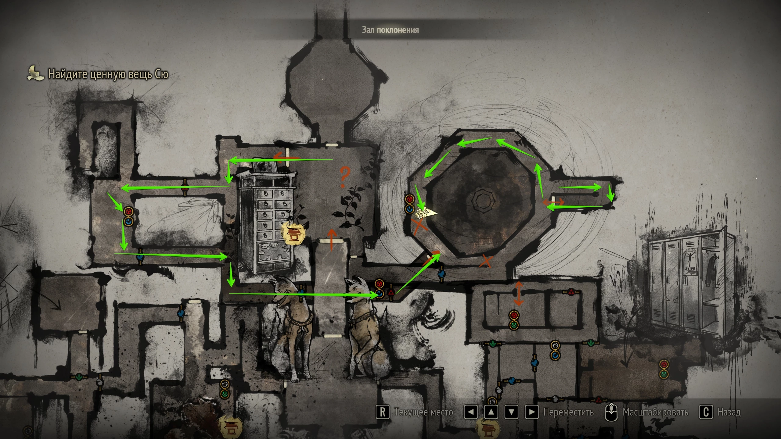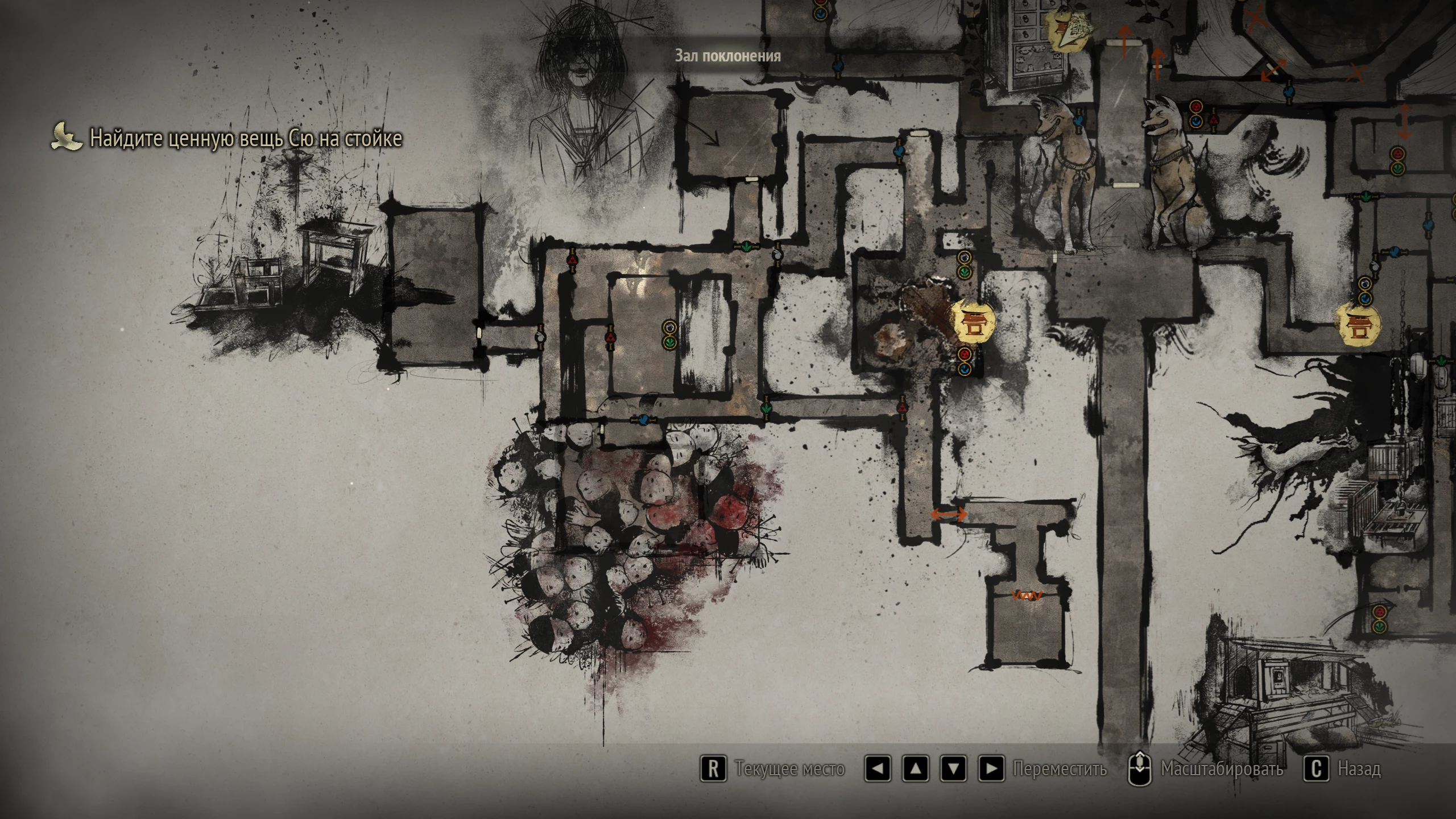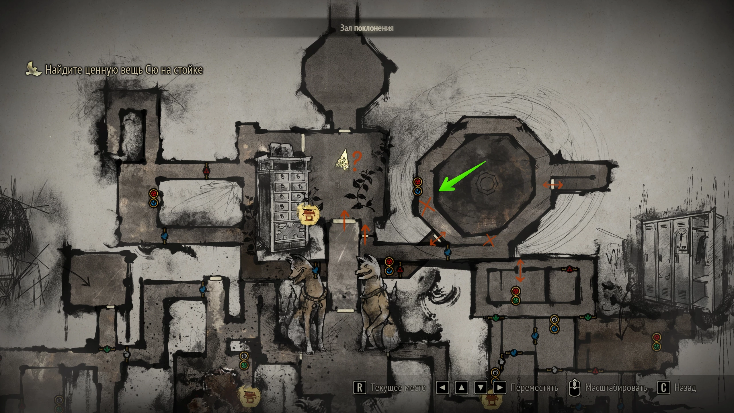 Пройдіть через священні ворота і потрапите в велику кімнату, в якій на шести постаментах стоять речі Сю. В залежності від рівня складності змінюється кількість предметів, які потрібно шукати, щоб пройти далі.