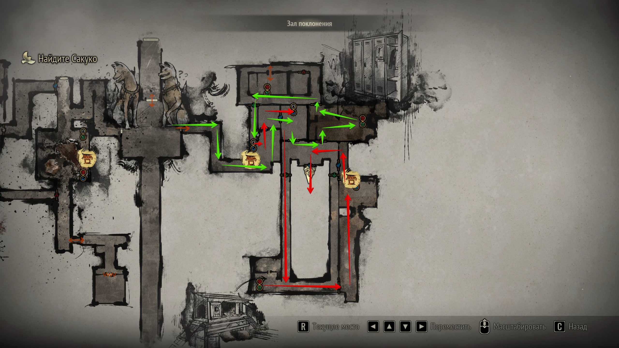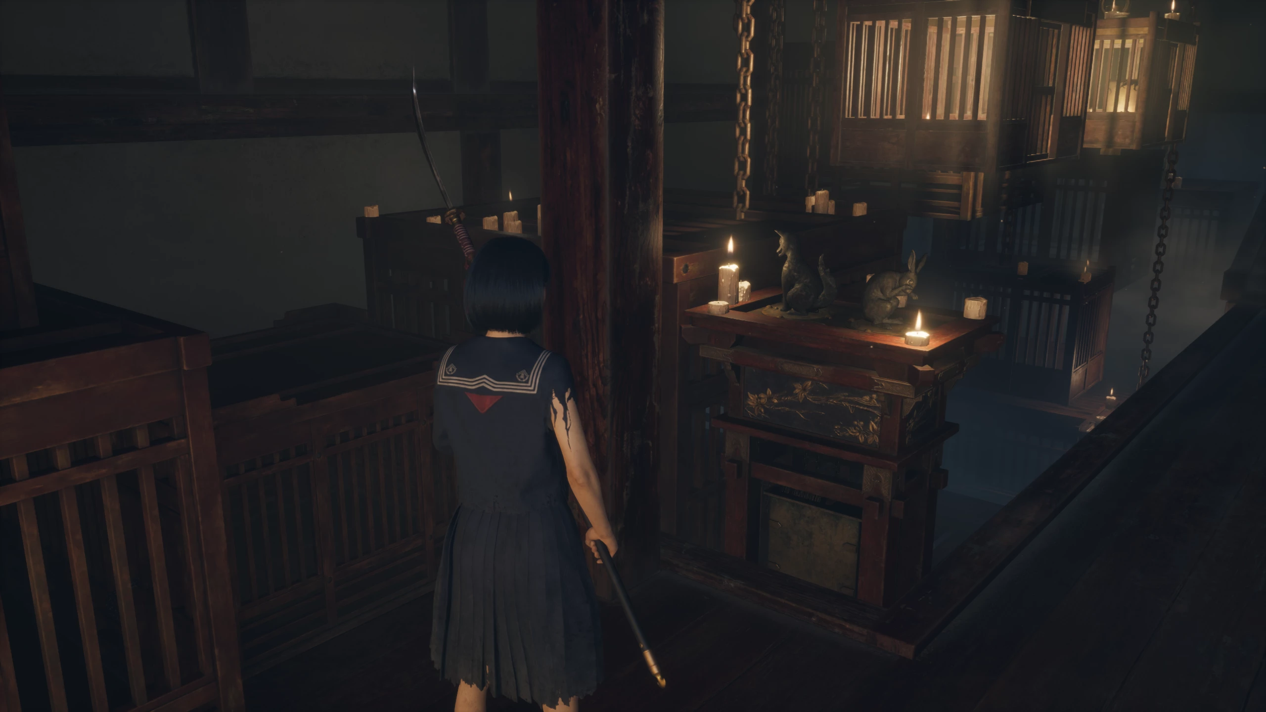 На вівтарі поруч з кліткою лежить ключ з емблемою — білим кроликом. Його потрібно вставити в праву замкову щілину під лапами статуї Інарі, щоб відкрити священні двері. Завдяки цьому Хінако зможе потрапити в останній зал приношень і покинути темну святиню.