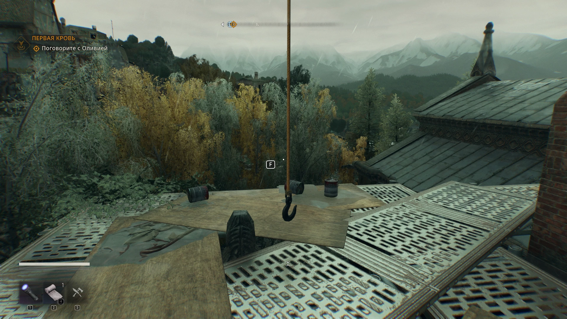 Підніміться по будівельних лісах до розбитого вікна. Всередині будьте готові до кількох заражених — вбийте їх перед тим, як продовжити. Піднімаємося по виступах, йдемо по перекладині, стрибаємо на піддони. Забираємося на червоний цегляний виступ, перепригуємо, переходимо на дерев'яну перекладину. Движемося вправо і стрибаємо на перекладину з червоною ганчіркою.