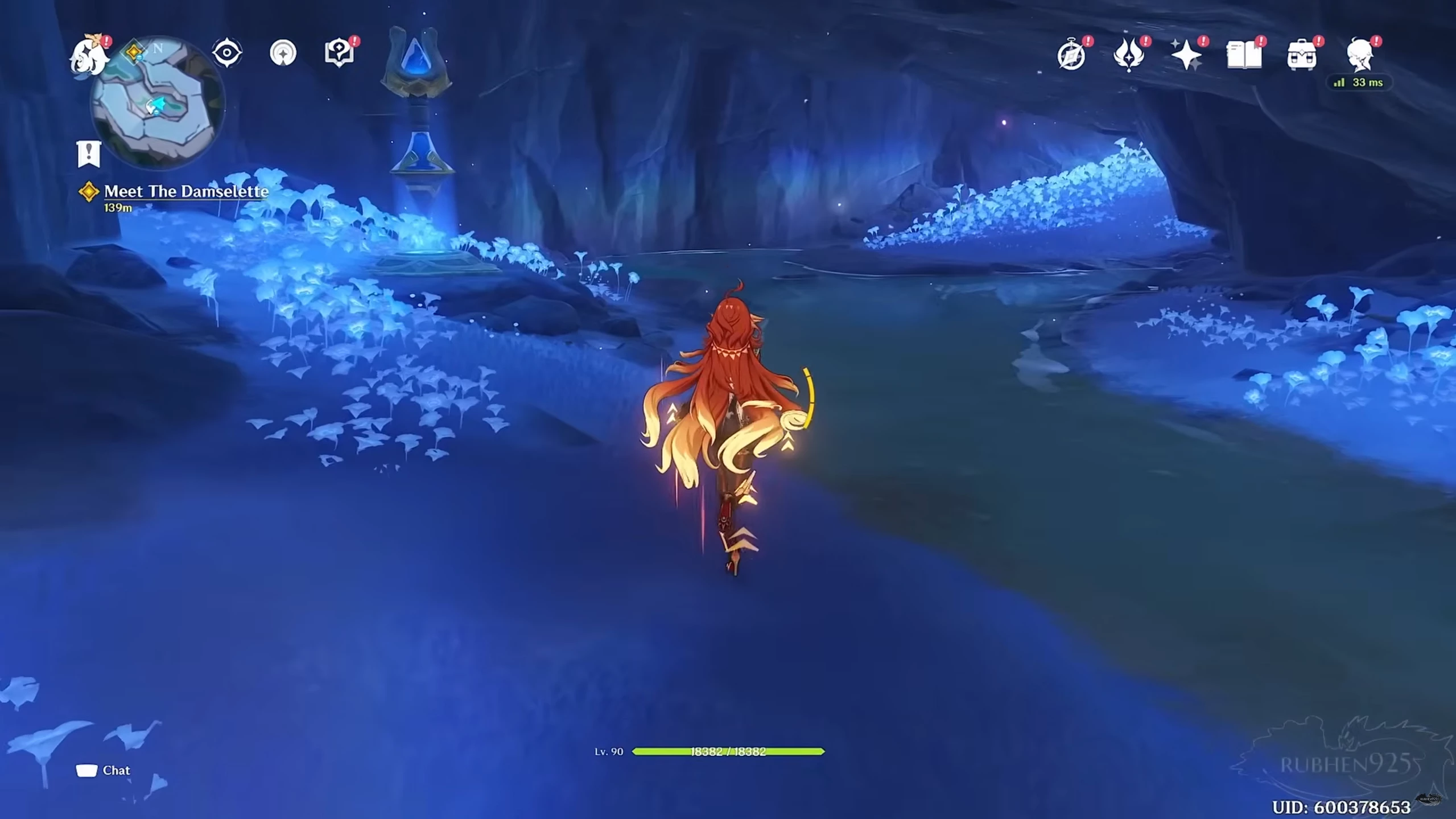 Спустившись, зустрічаємо перешкоду у вигляді хілічурлів і закритого проходу. Подолавши ворогів, використовуємо хорька, щоб закрити яму в землі і запобігти втечі крота-нюхача. Використовуємо його силу куув’яки і ламаємо перешкоду. Проходимо за стіну і відкриваємо прихований підземний телепорт острова.