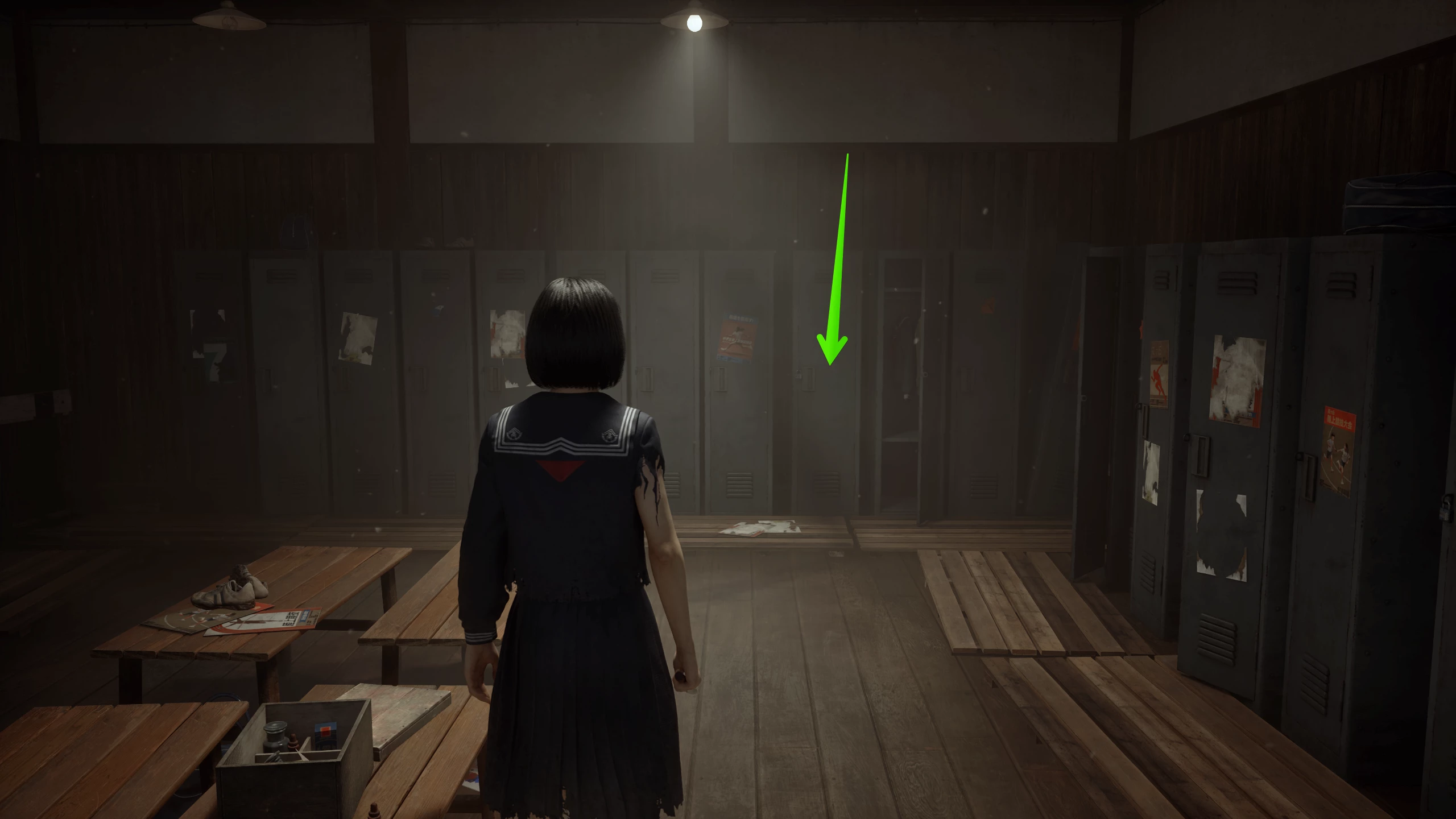 Шафи учнів знаходяться на першому поверсі середньої школи Ебісугаоки, поруч з взуттєвими стійками біля кабінету чергового вчителя. Щоб туди потрапити, потрібно зайти на другий поверх і відкрити дерев'яний ящик в класі Хінако. Потім у сусідній аудиторії необхідно знайти ключ від прибудови, в якій лежить зв'язка від жіночої роздягальні.