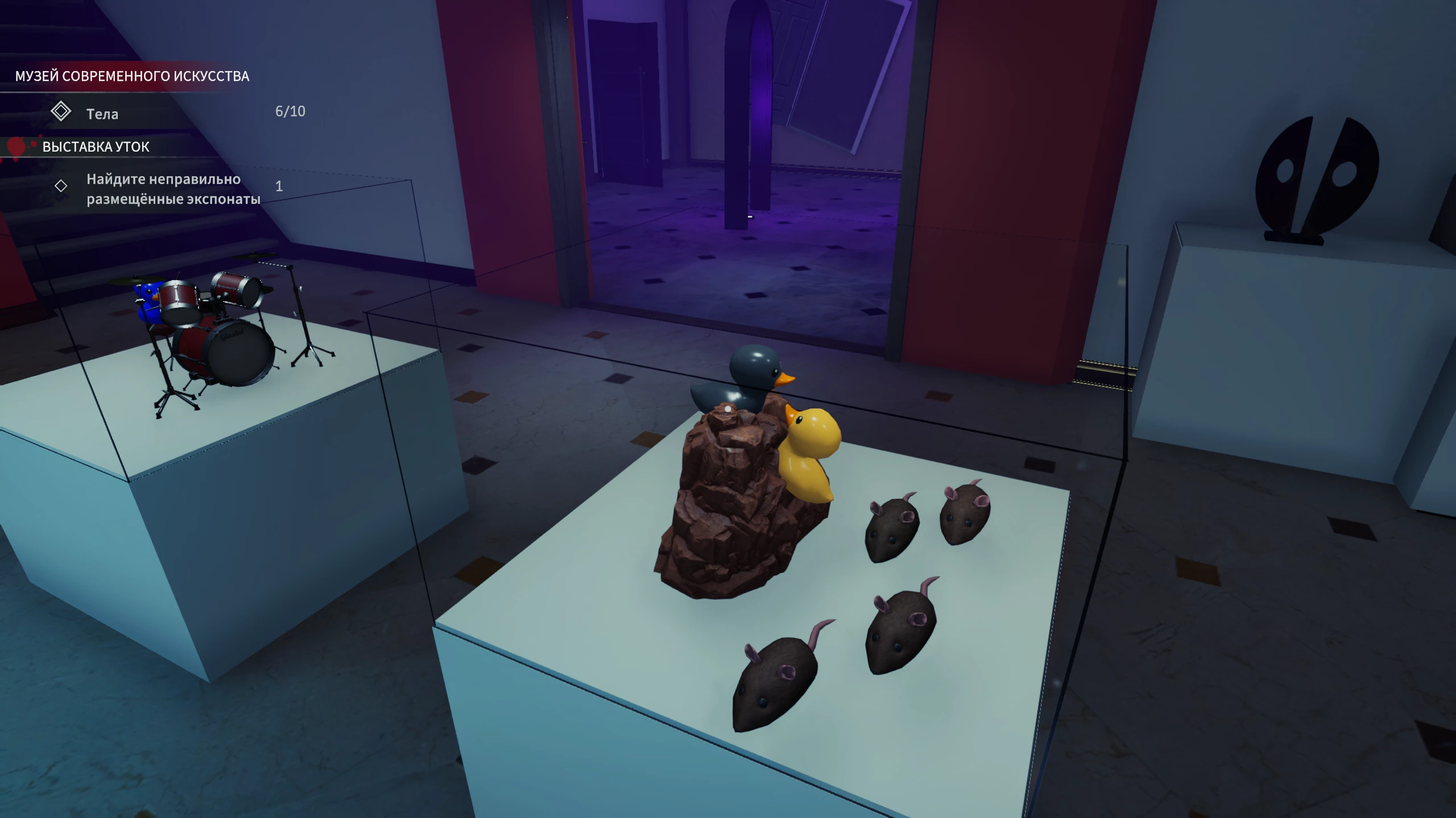 Зайшовши в кафетерій, розверніться та огляньте підлогу. Там буде лежати доказ «Іграшковий пістолет». Пройдіть ще трохи далі, зліва на стіні розташований Ловець снів № 2. У наступній кімнаті з червоним порталом біля трупів лежить доказ «Ніж». Не варто натискати на червону качку, тому що буде безкінечно з'являтися новий сміття.