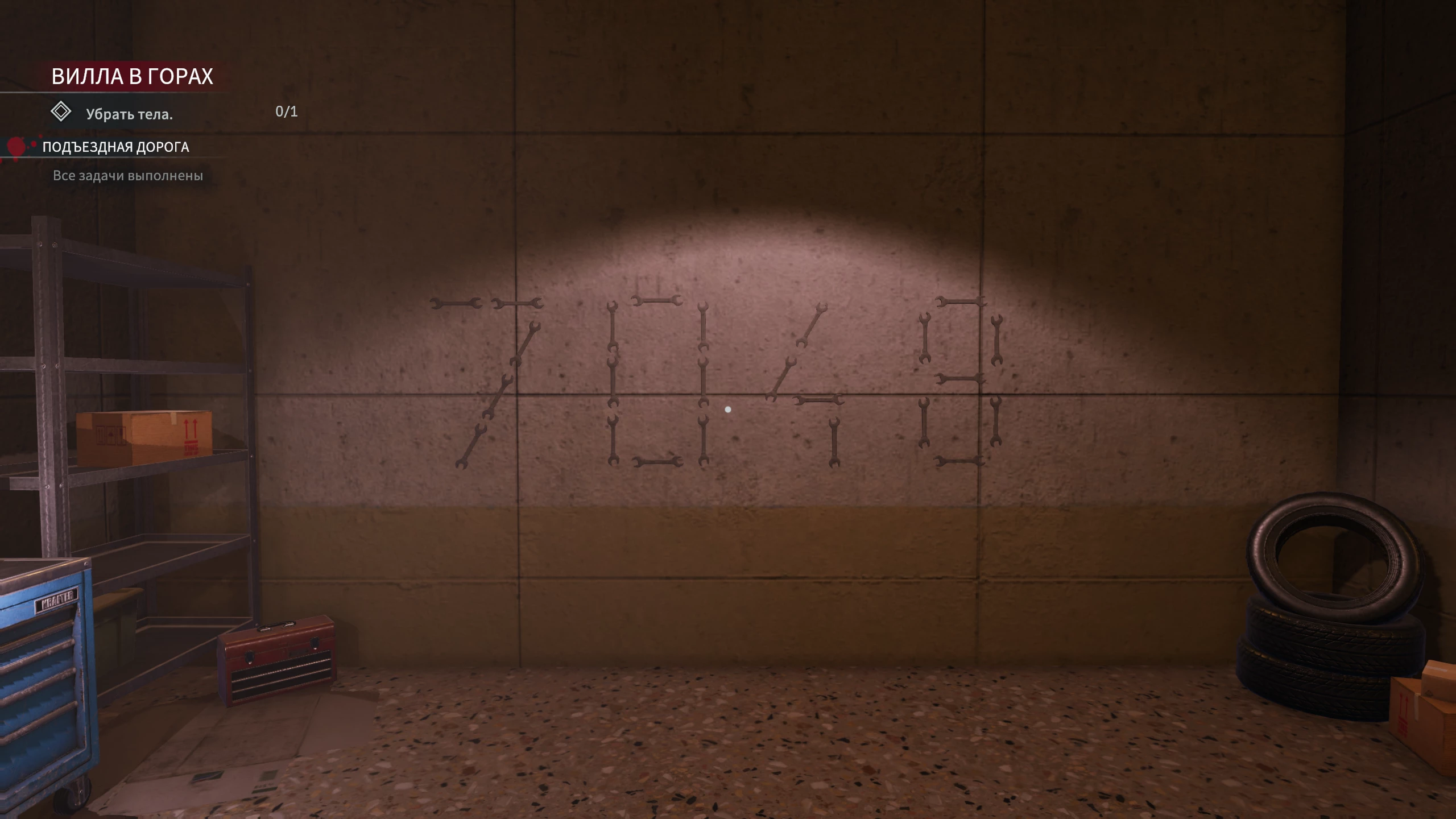У сусідній кімнаті очистіть картину справа та поверніть на місце. За нею ви знайдете ключ від головоломки 01. Цей ключ відкриє двері на балкон. На вікні можна підібрати ключ від головоломки 02 та побачити підказку на парковочному місці. Оглянувши це місце, стіни другого поверху та картини за решіткою, ви отримаєте код 2-5-0-1, який можна застосувати, щоб відкрити прохід на перший поверх.