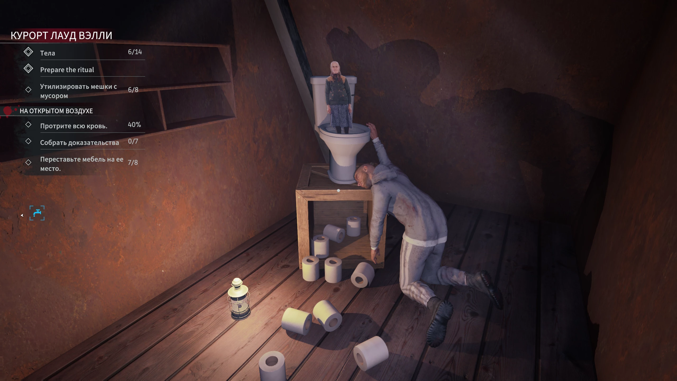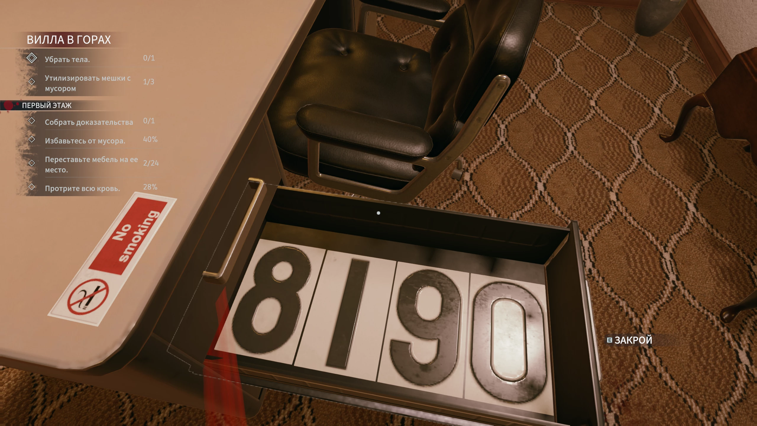 У цій місії зручніше всього рухатися за годинниковою стрілкою, очищаючи портали та виносячи все зайве в нейтральну кімнату. З'явившись на рівні, не заходьте одразу в портал, за ним на стіні схований Ловець снів № 1. У кімнаті «Виставка меблів» на одному з столів лежить труп з доказом «Ніж».