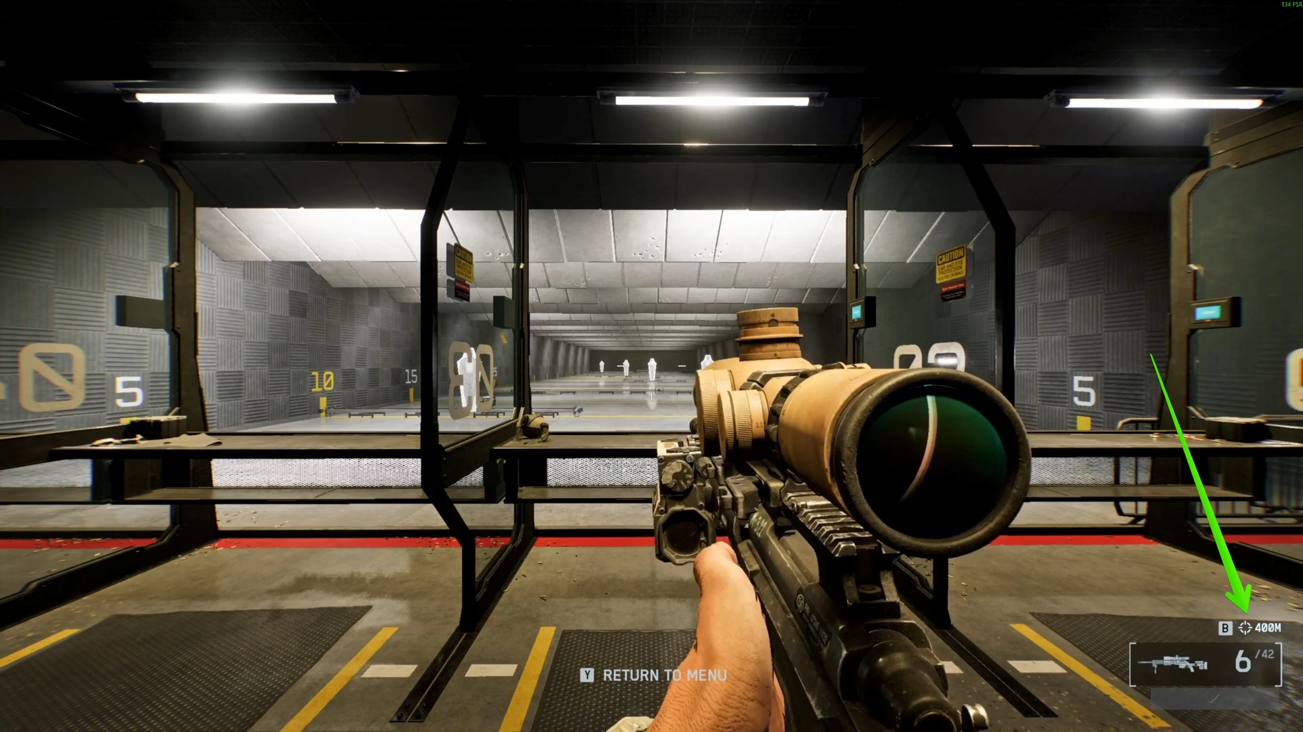 Тепер подивіться на противника через приціл і побачите над лічильником патронів, скільки метрів від стрільця до цілі. Завдяки цьому ви з високою точністю зможете розрахувати траєкторію польоту кулі та її балістику.