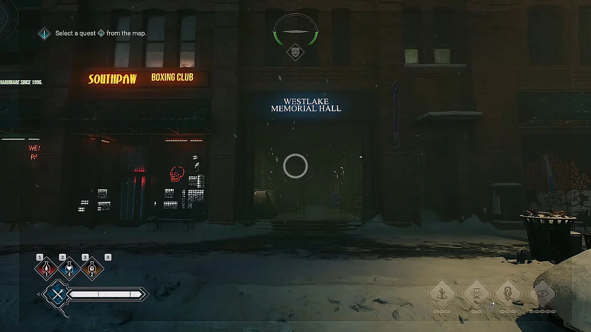 На півночі від Haven (притулок) є невеликий дворик. Шукайте неонову вивіску Westlake Memorial Hall. Потім пройдіть трохи прямо і побачите камеру, яка закріплена на куті будівлі.