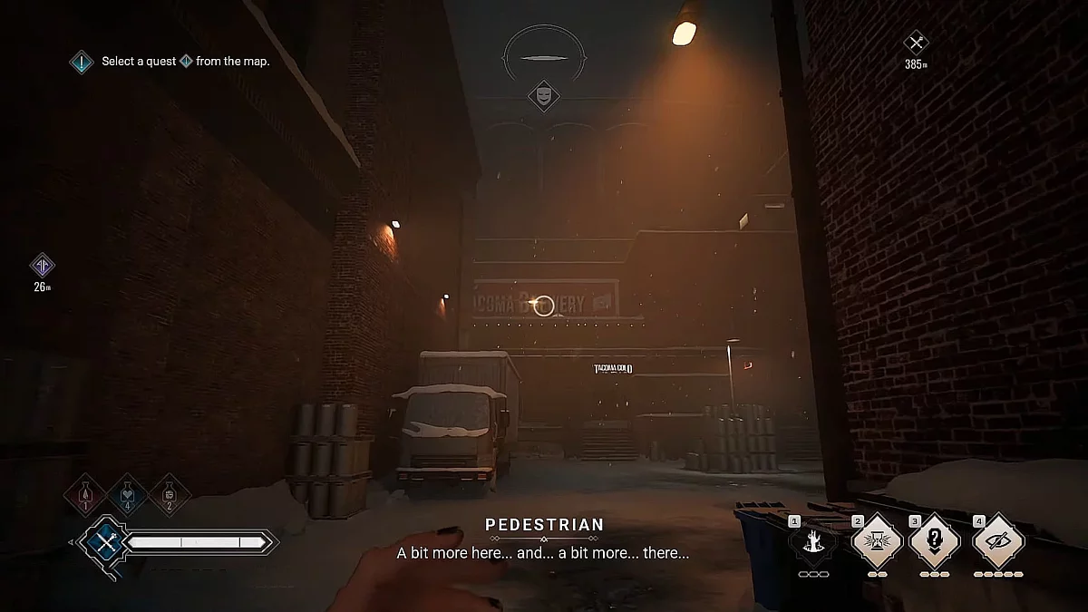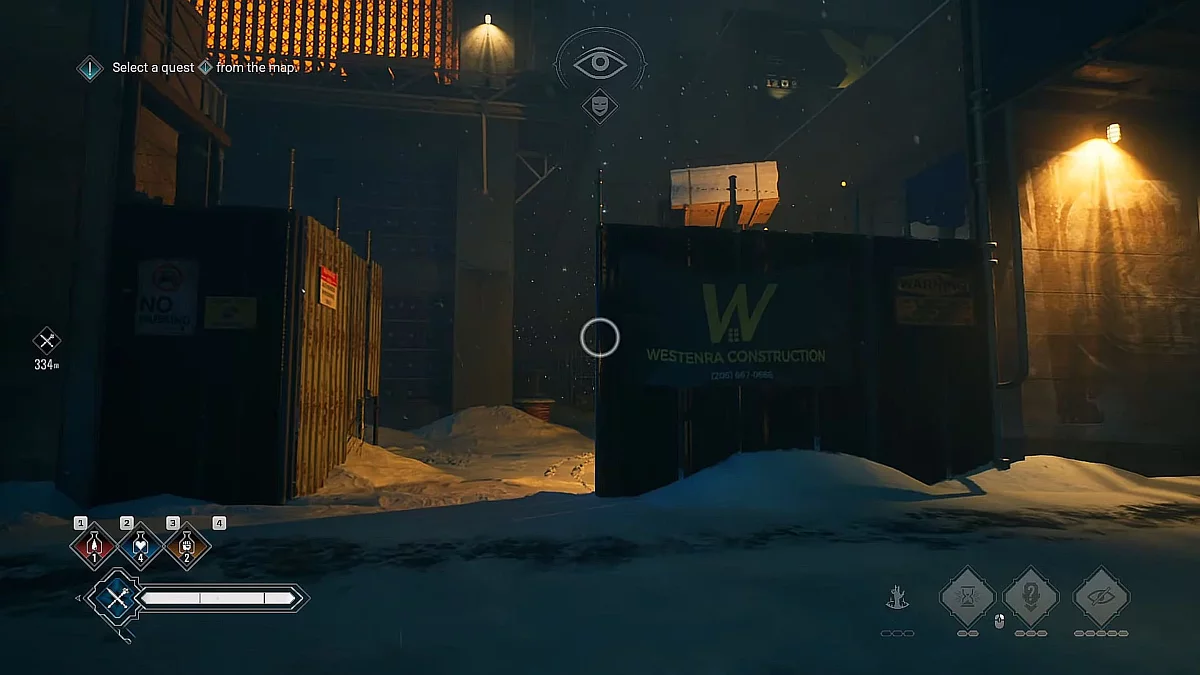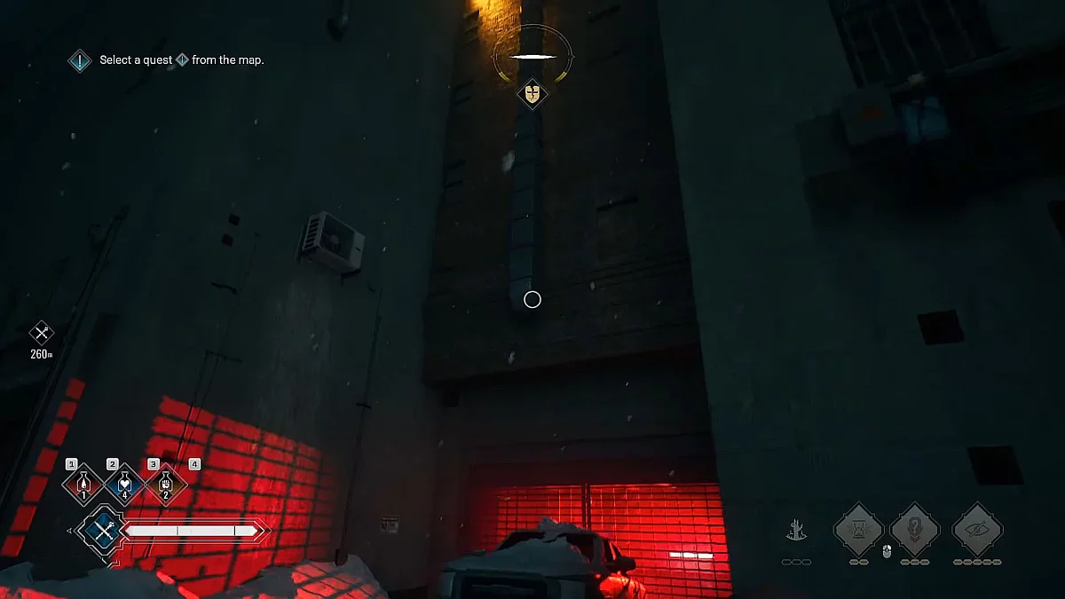 Навпроти Weaver Tower (на сході) знаходиться провулок зі стоянкою, освітленою яскраво-червоним світлом. Над припаркованим на стоянці позашляховиком є виступаюча труба. Вона приведе на дах, де встановлена камера.