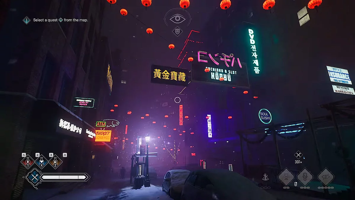 Рухайтеся по вулиці на південний захід від Aurora Pawn, пройдіть повз будівлю з пагодою з попереднього пункту і поверніть праворуч у закуток з круглою неоновою вивіскою, на якій зображений дракон. Камера знаходиться на стіні за цією вивіскою.