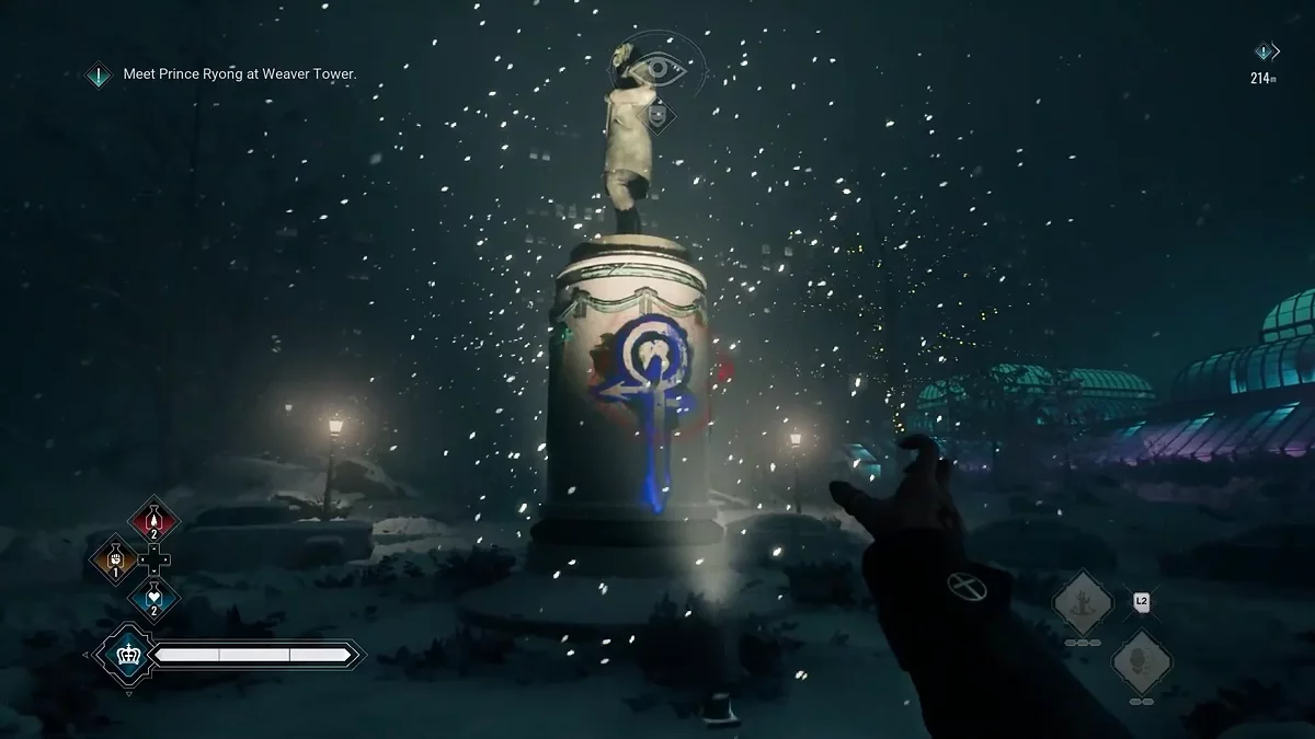 У наступному районі, на заході від Консерваторії, підніміться на дах і огляньте західну сторону одного з будівель — там розташована наступна мітка.