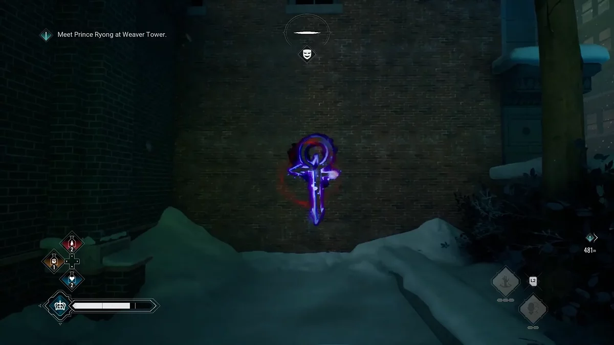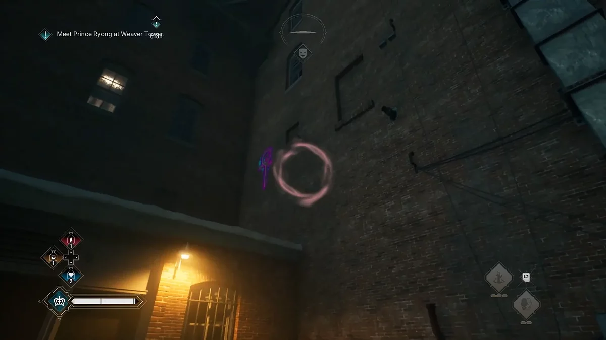 Підніміться на дахи на захід від Wake the Dead і обійдіть виступ будівлі, поки не дійдете до перехрестя. Мітка розташована на бічній стороні будівлі.