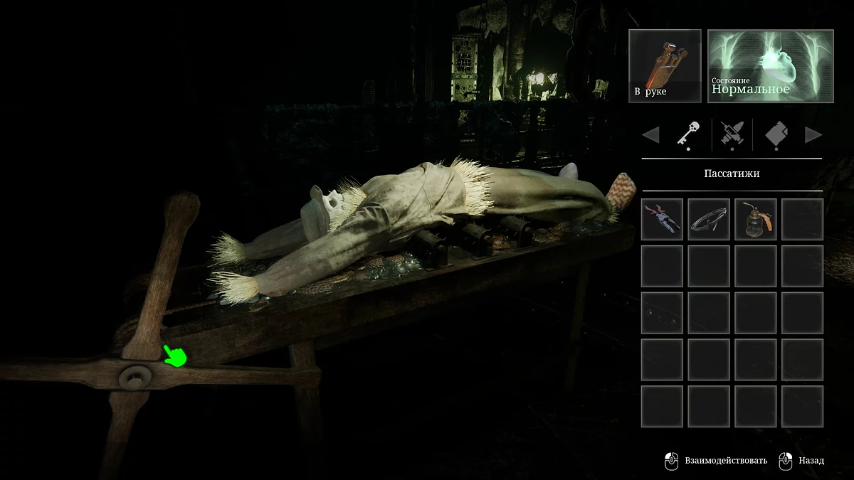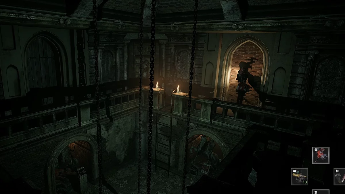 Добравшись до музею катувань за допомогою ключа, пройдіть повз стіл з прикованим трупом і зламайте іржавий замок на дверях молотком. Запаліть свічки в потрібному порядку і відкрийте портал в інший світ. Тут потягніть за ручку на столі і розірвіть манекен навпіл. В оригінальному світі труп розірве на дві частини, і його рештки відкриють доступ до залізної труби. Це покращення підвищить магазин дробовика.