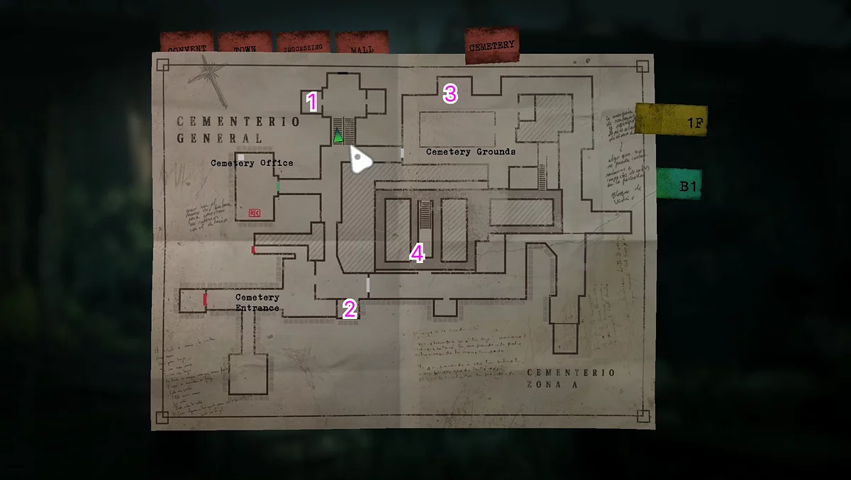 1. Диск з черепахою — пройдіть на північ кладовища, в невелике підсобне приміщення на відкритій території. В ньому буде знаходитися коричневий гроб, після вскриття якого можна буде забрати частину ключа.