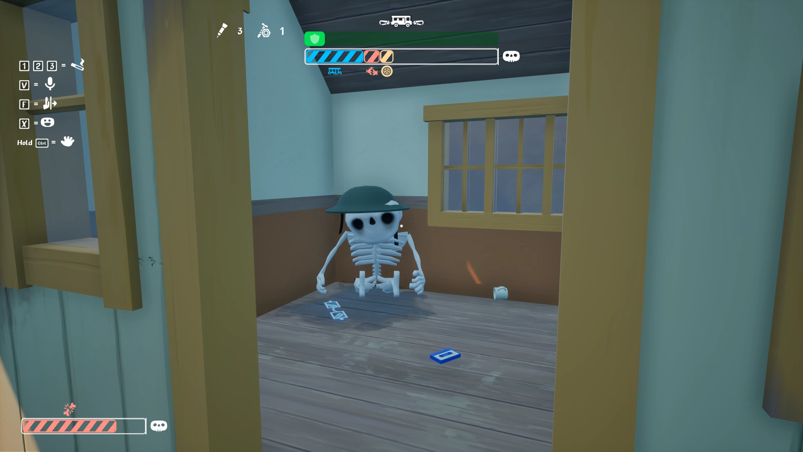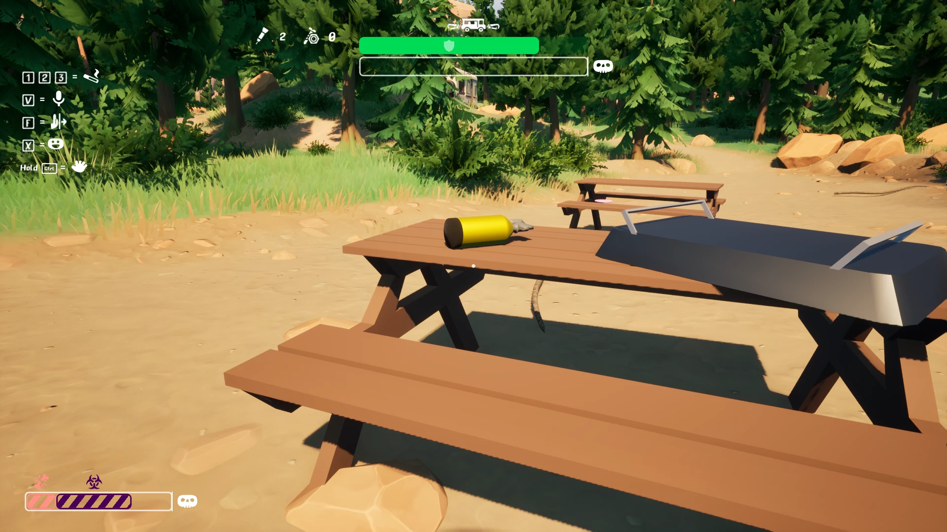 - ЛКМ — гудок. Чутно на великій відстані і допоможе зібрати інших гравців, які загубилися в лісі.
