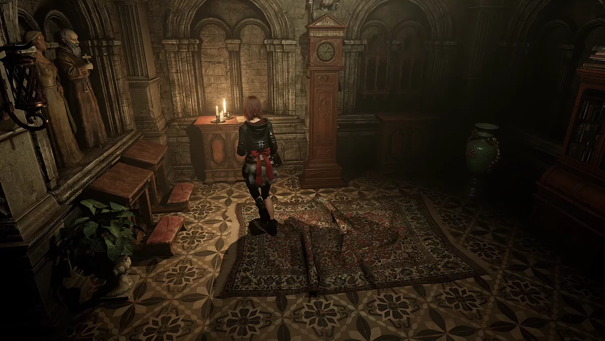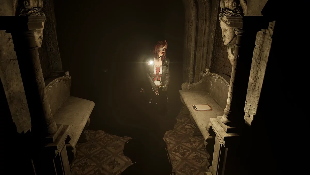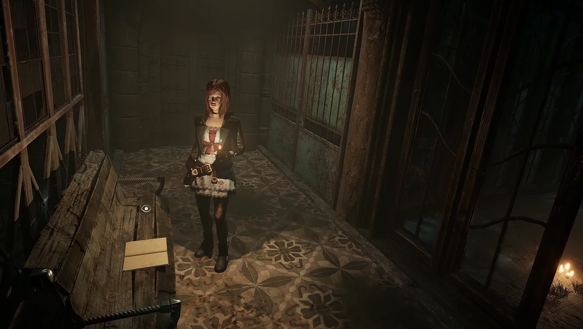 Наступний лист знаходиться в поминальній церкві. Відкрийте двері ломом і підніміться по сходах до вівтаря, на якому лежить другий блокнот монахині.