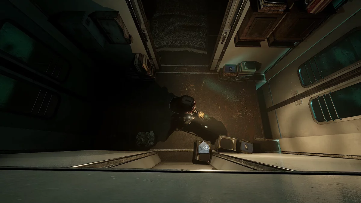 Пройдіть у темну частину лазарету, спустившись по сходах біля дверей у основний коридор, і заберіть записи на каталці.