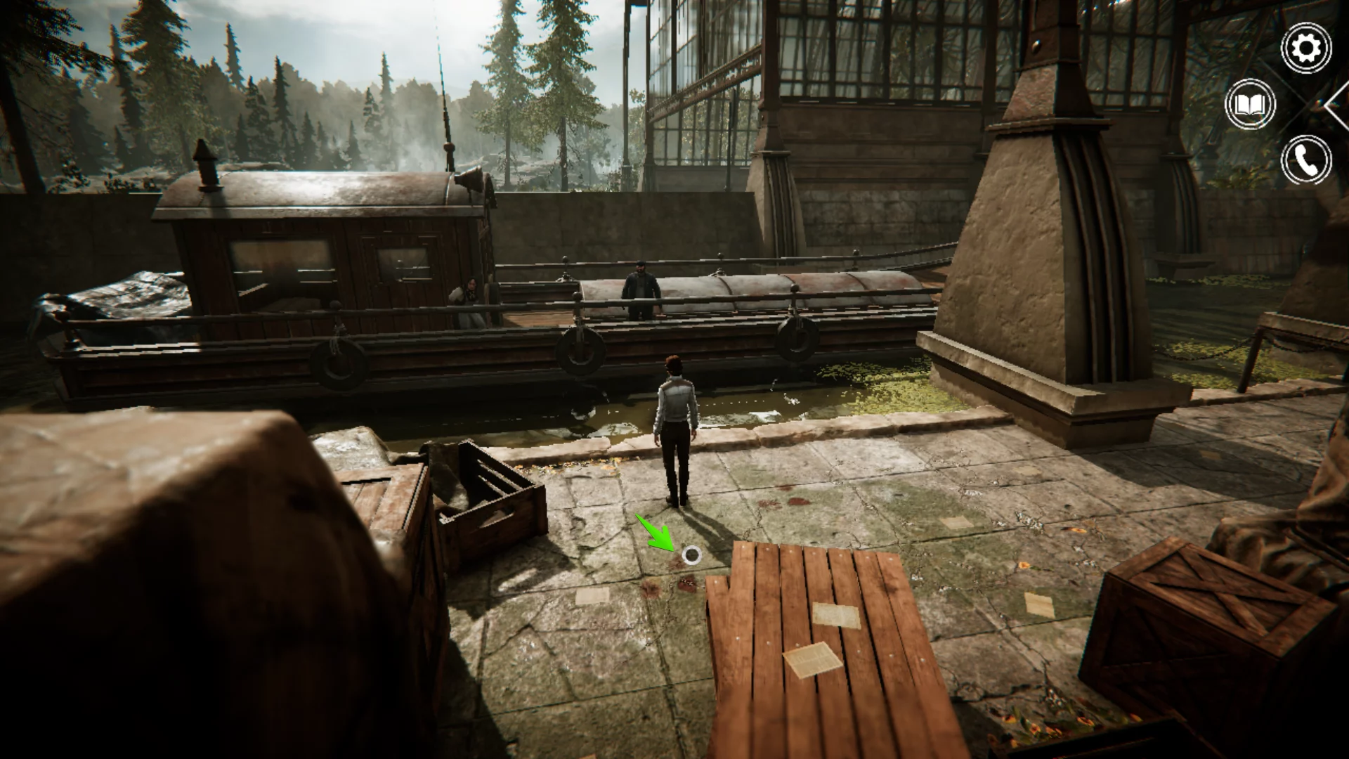 Спустіться з потяга правою стороною і рухайтеся в бік мосту. Перейдіть перший проліт, потім поверніть праворуч. Зліва стоятиме чоловік — поговоріть з ним, вичерпавши всі доступні репліки. Після цього перетніть другий міст, що веде до виходу зі станції, і поверніть праворуч. Якщо пройти вперед до човна, Кейт зустріне матросів. З бесіди ви дізнаєтеся, що для відкриття шлюзу вони вимагають сто доларів. Грошей зараз у героїні немає, тому просто запам'ятайте це і огляньтеся навколо. На ящику поруч з човном можна підібрати гачок.