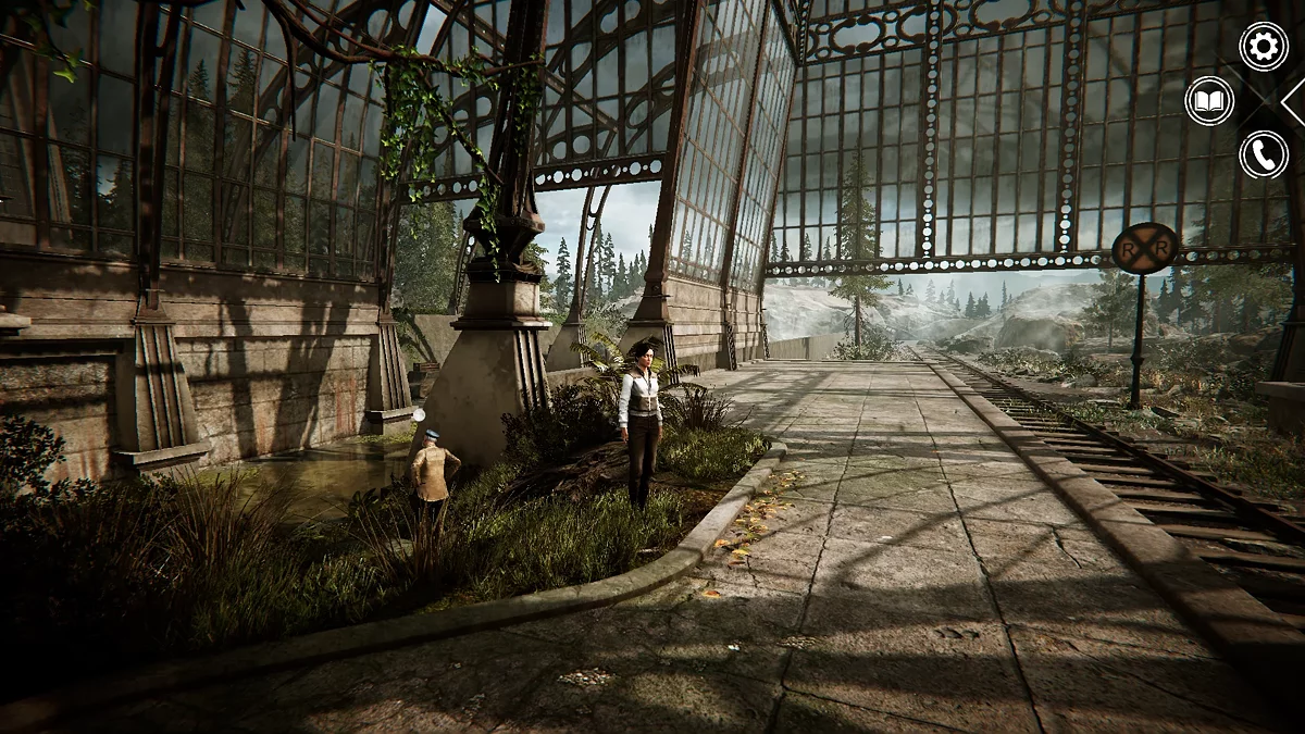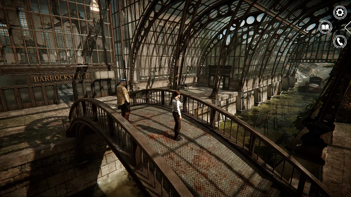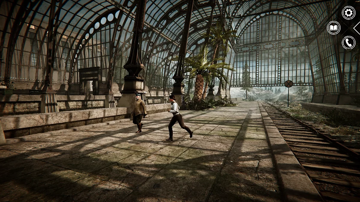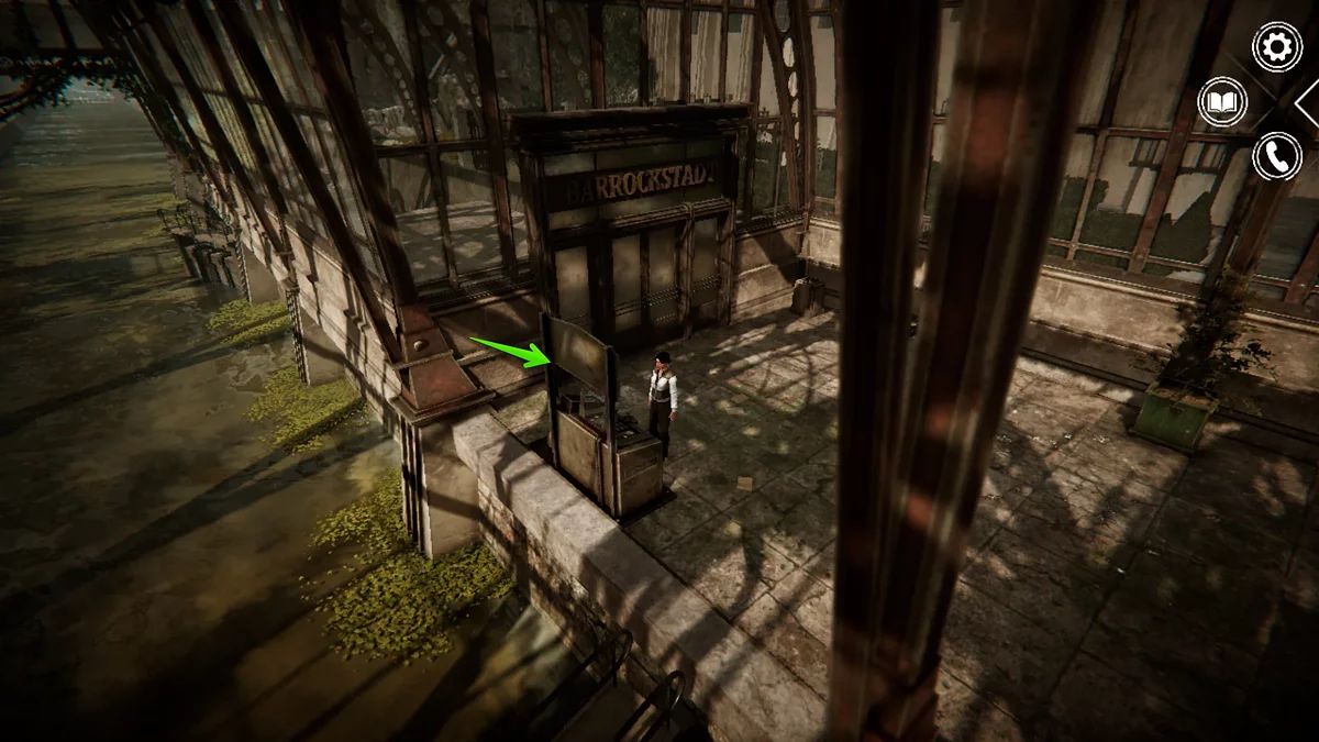 Повертаємося до поїзда і проходимо на інший бік, щоб взаємодіяти з механізмом і завести пружини. Тепер звертаємося до Оскара і проїжджаємо ще трохи вперед до стіни. Виходимо з поїзда, спускаємося праворуч і підходимо до кіоску, де знову чекає автоматон. Слідувати далі він виявиться, поки ви не пред'явите йому виїзну візу.