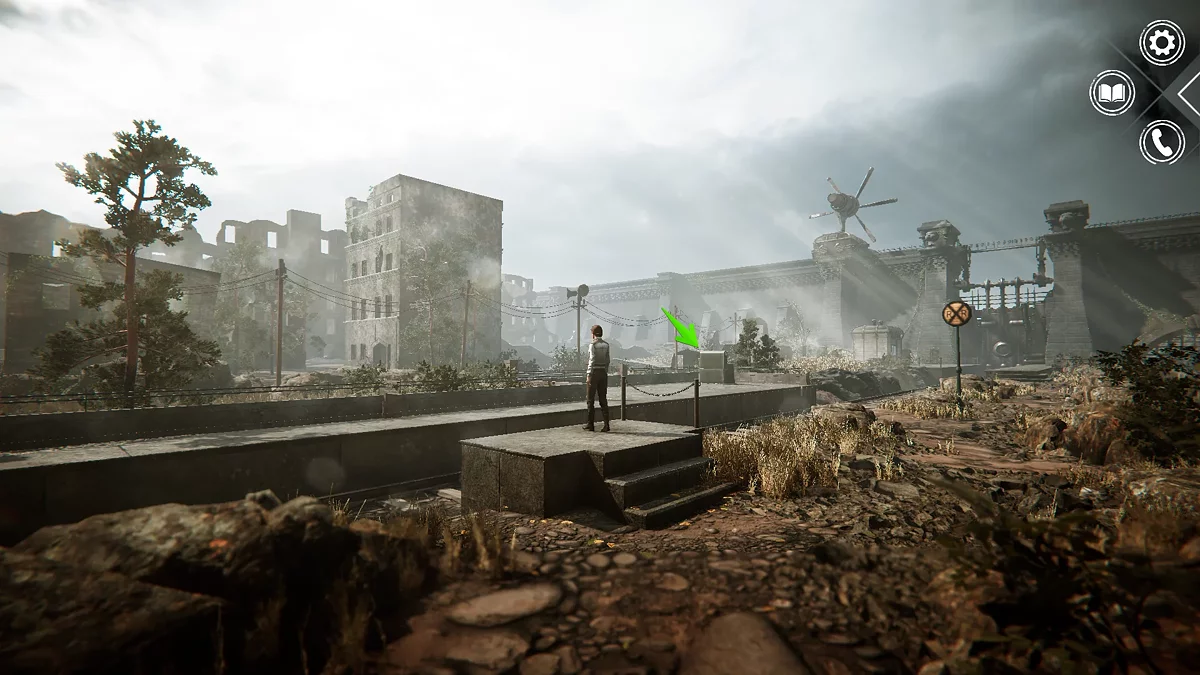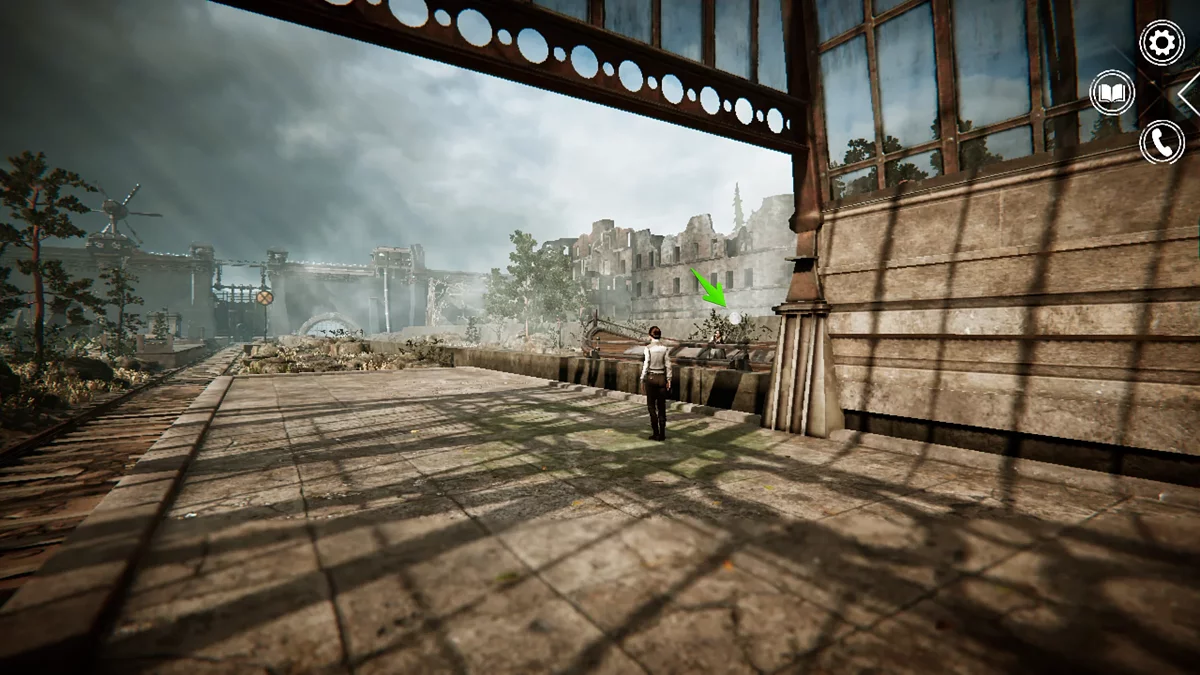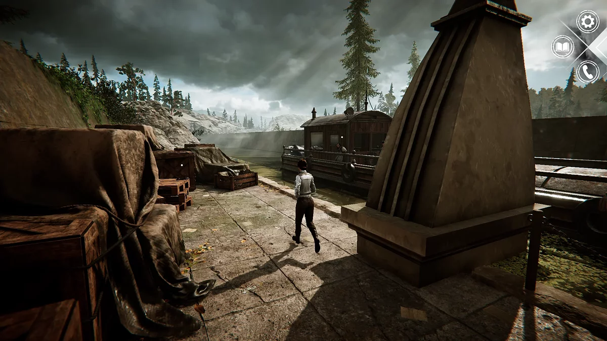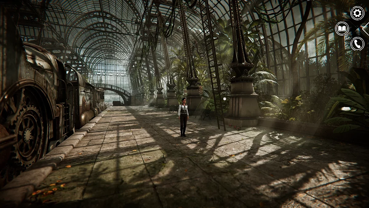 Повертаємося до поїзда і проходимо на інший бік, щоб взаємодіяти з механізмом і завести пружини. Тепер звертаємося до Оскара і проїжджаємо ще трохи вперед до стіни. Виходимо з поїзда, спускаємося праворуч і підходимо до кіоску, де знову чекає автоматон. Слідувати далі він виявиться, поки ви не пред'явите йому виїзну візу.