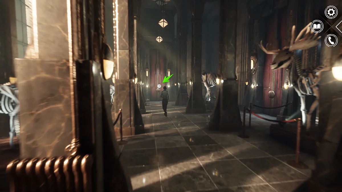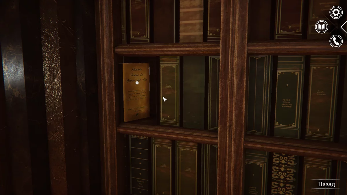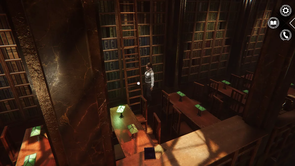 Продовжуйте рухатися вперед, підніміться по наступних сходах і поверніть наліво. Знайдіть приставну сходи, огляньте її і підберіть книгу про гриби. Після цього можна повертатися в холл: інтерактивних об'єктів у бібліотеці більше немає. Підніміться по сходах в аудиторію і огляньте кімнату. Тут лежить елемент оркестру №1 — не забудьте забрати його.
