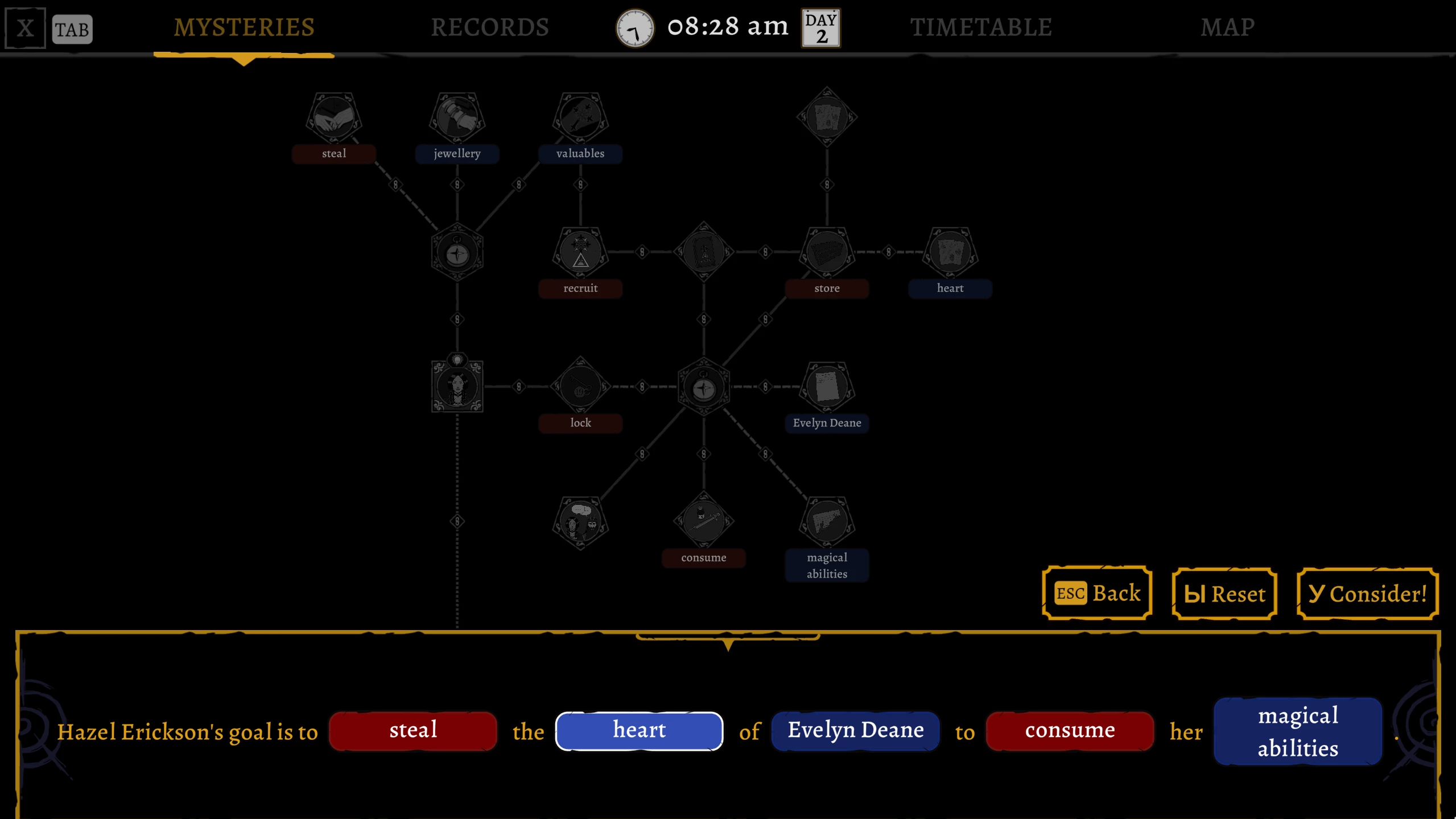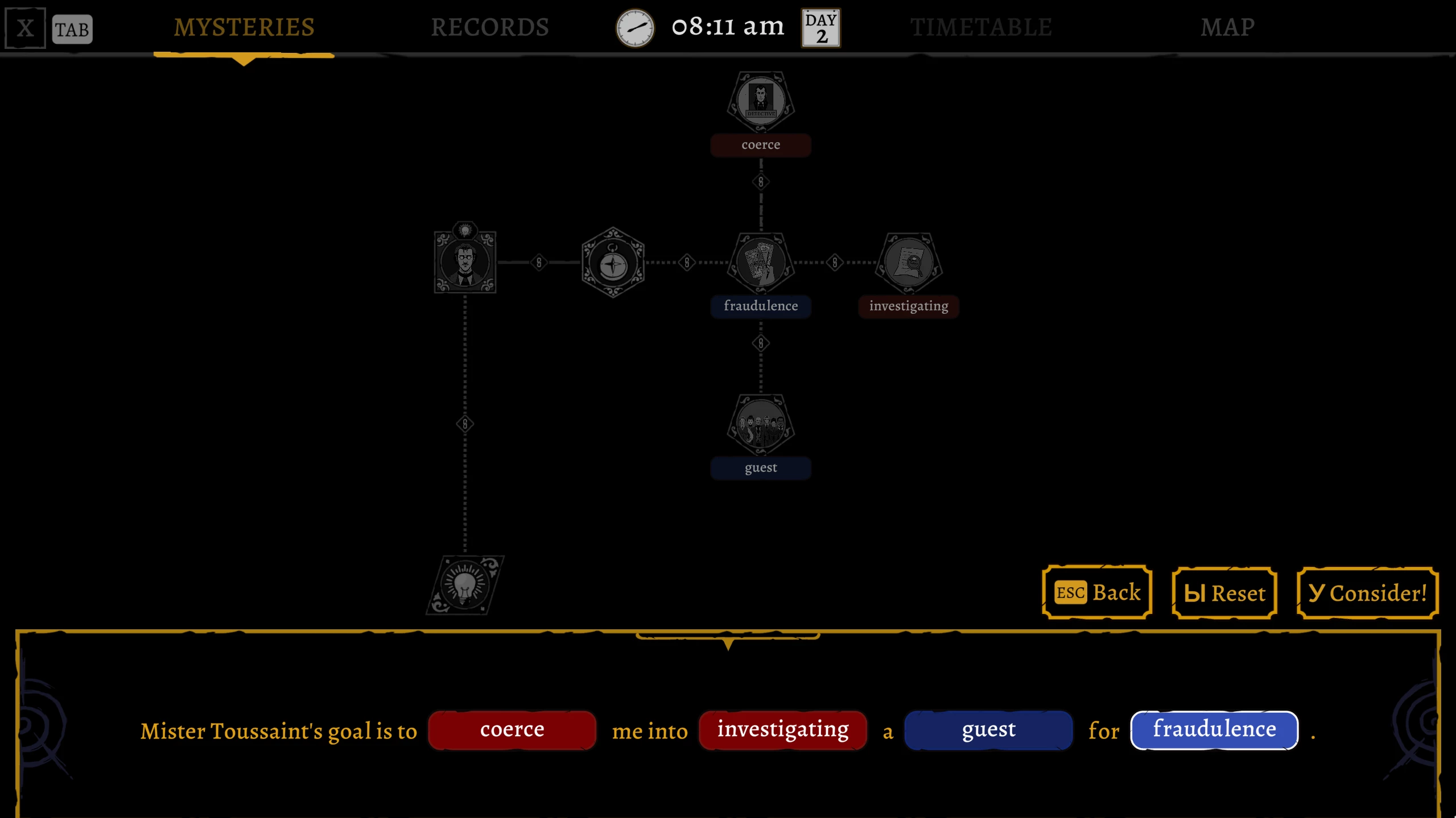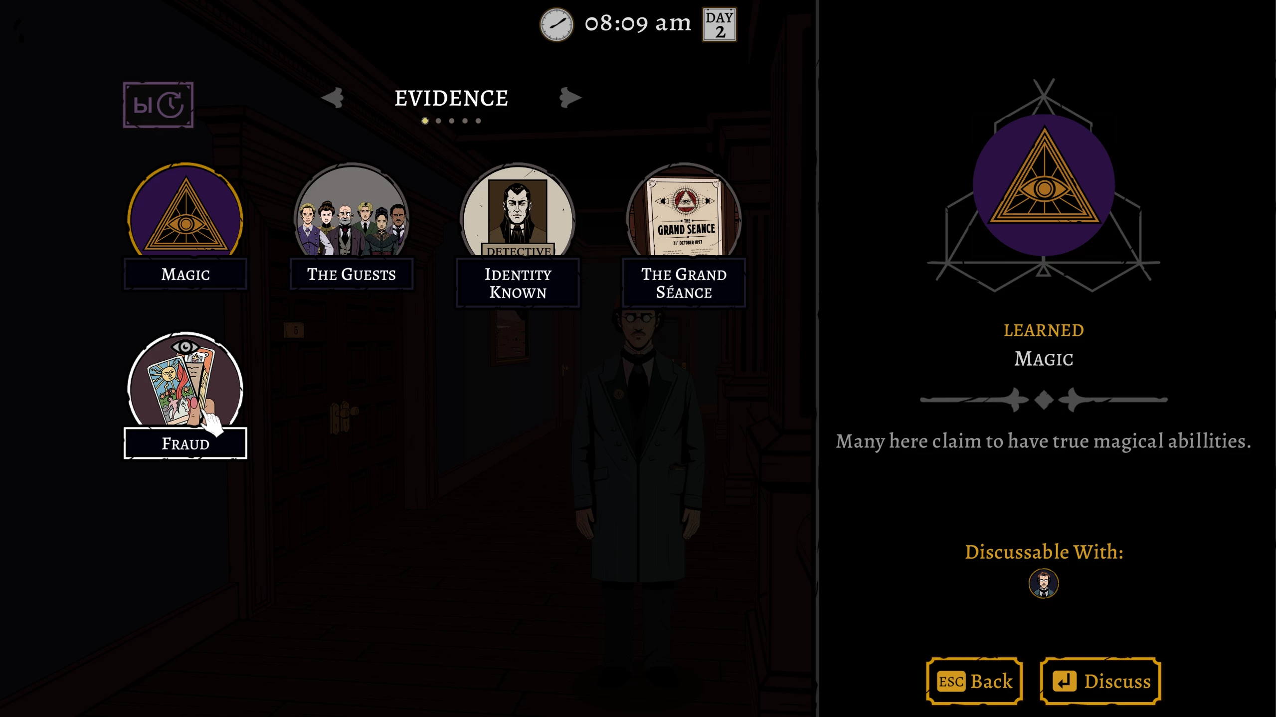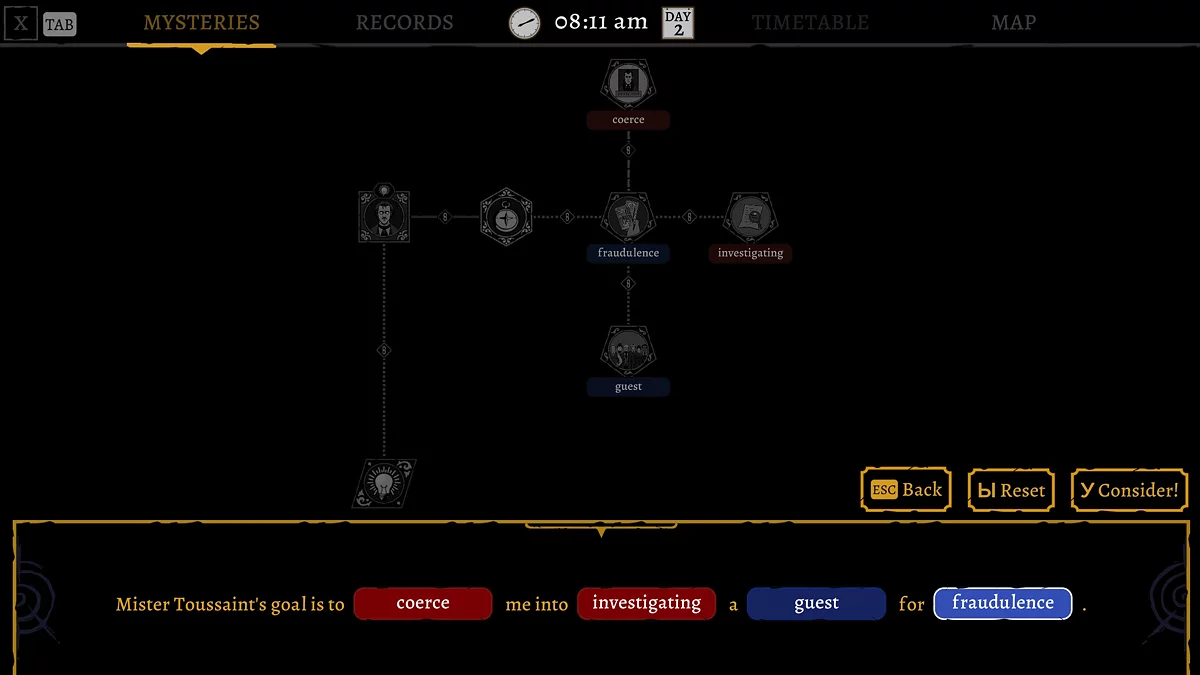 Він пропонує нам угоду: якщо ми погодимося зробити для нього дещо, він не розкриє особистість головного героя за загальним сніданком. Щоб зрозуміти мотиви слідчого, допитуємо його і вибираємо докази «Шарлатан», а потім «Гості». Після цього формуємо гіпотезу, за допомогою якої можна буде дізнатися суть угоди.