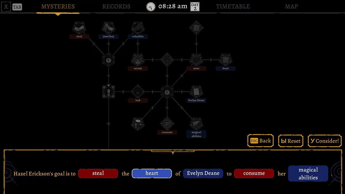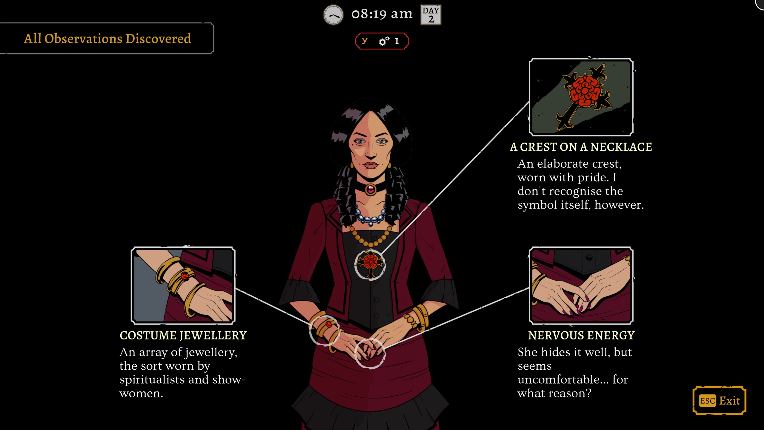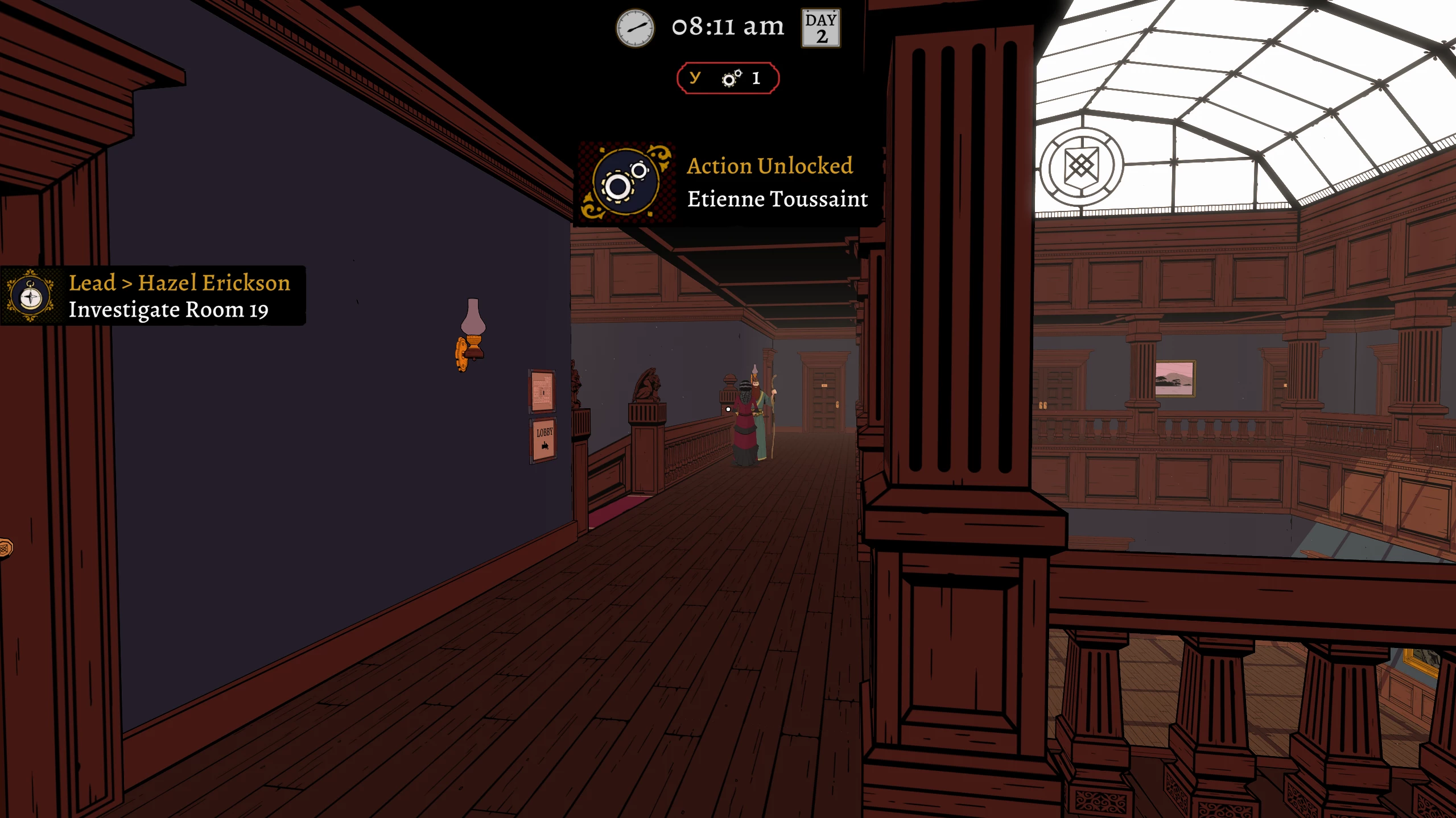 Пред'являємо слідчому цю думку за допомогою опції «Confront». Детектив Уорд прав, і Туссон просить нас вивчити особу мадемуазель Хазель Ериксон. Він дає ключі від її номера і каже, що справу потрібно закінчити протягом години — інакше угоді кінець.
