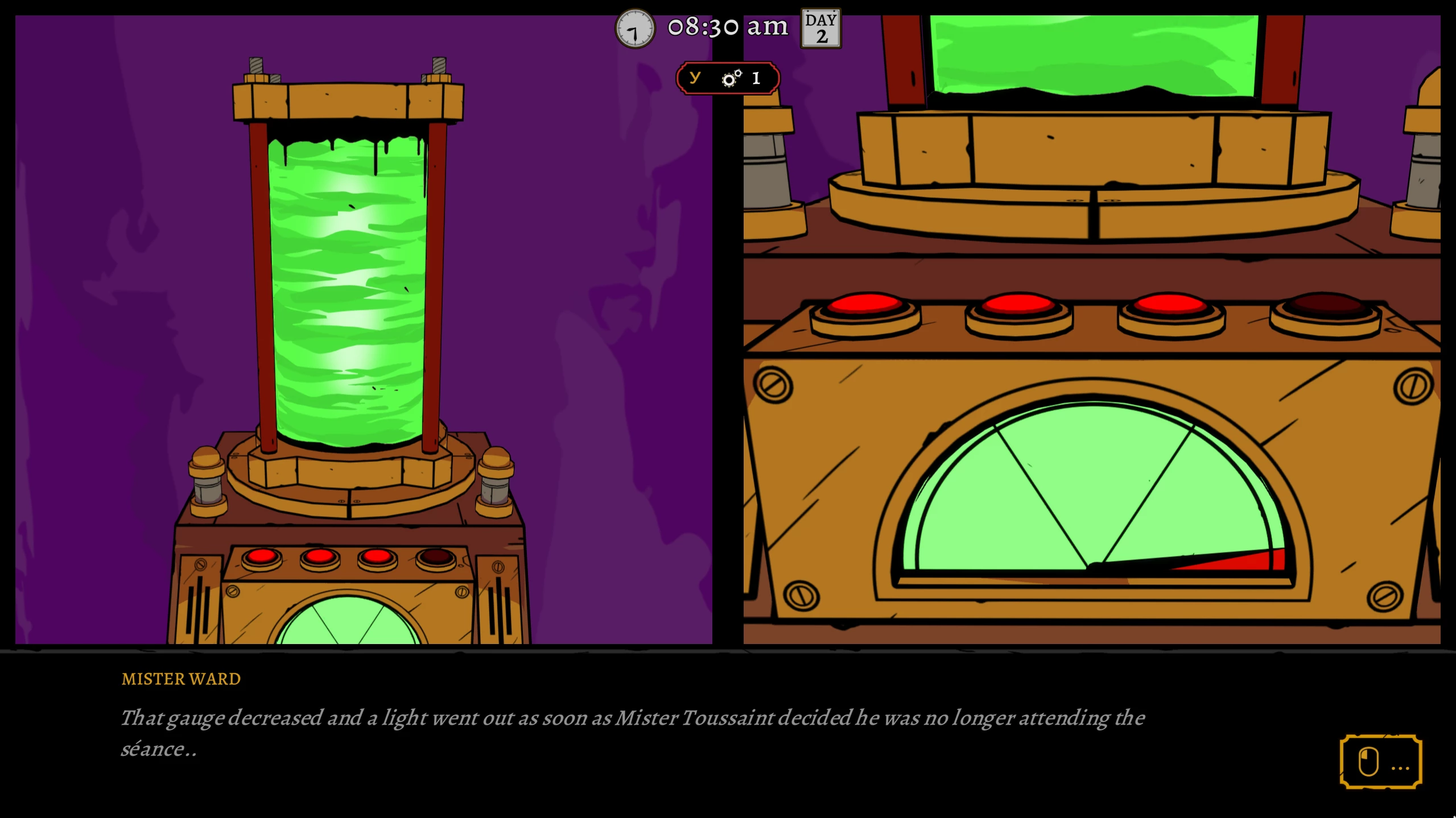 Після вивчення того, що насправді замислила жінка, слідчий в спішці покидає сеанс, що призводить до зміни дивного пристрою на першому поверсі: його енергія знижується.